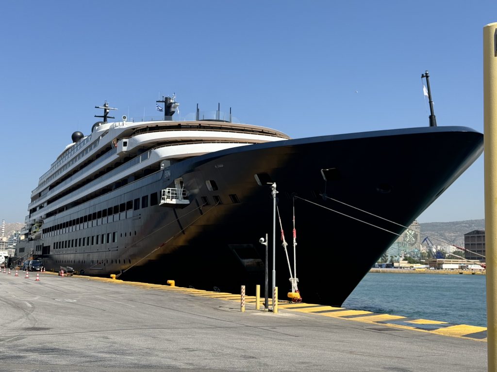 We drop off our bags at 12:15, then rapidly pass through check-in and security so that by 12:30 we are onboard and drinking champagne beside the pool on deck 9.