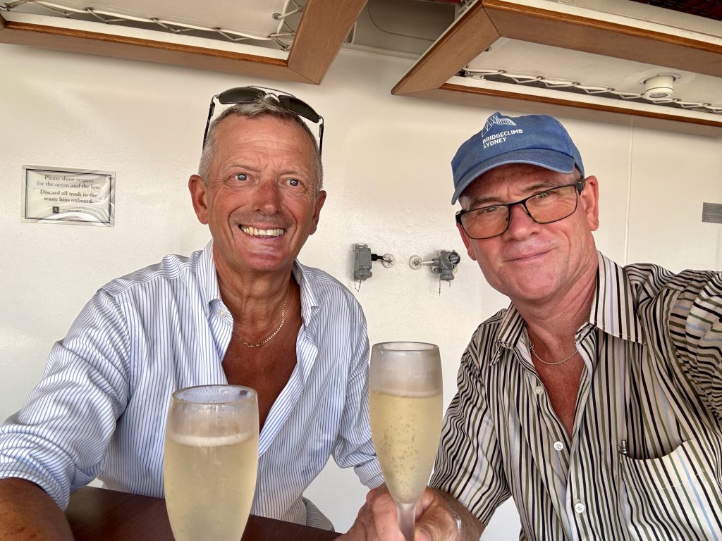 By the time we have eaten, it’s time to check if our baggage has arrived, and it has, so we unpack and shove the empty bags under the bed so we cannot notice them for the next three weeks. Meanwhile our lovely stewardess Ladda brings us mimosas and takes away our list of peculiarities, which of course we think are normal requests!