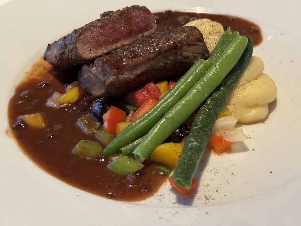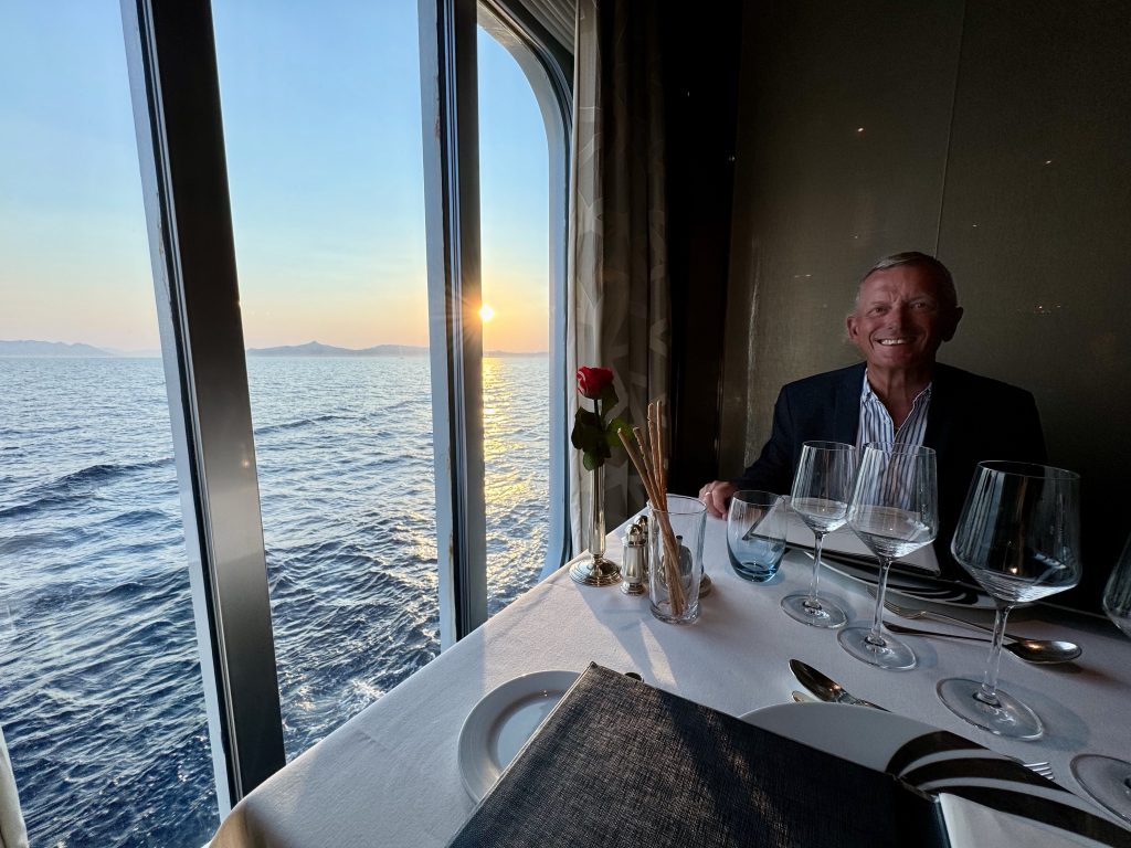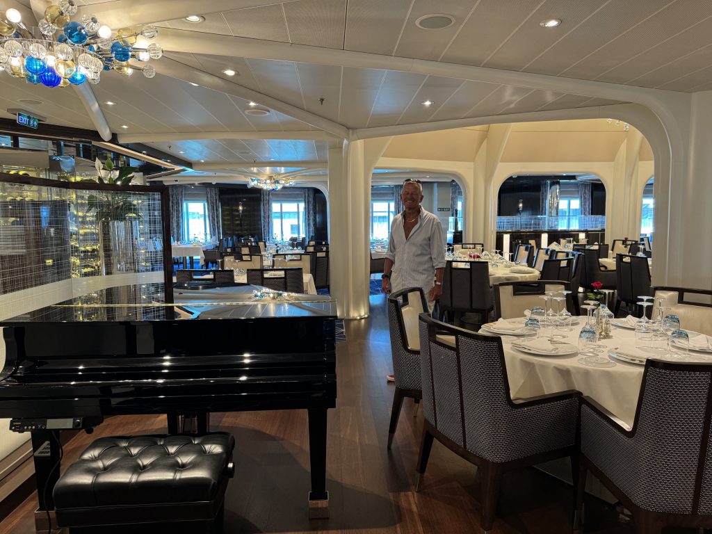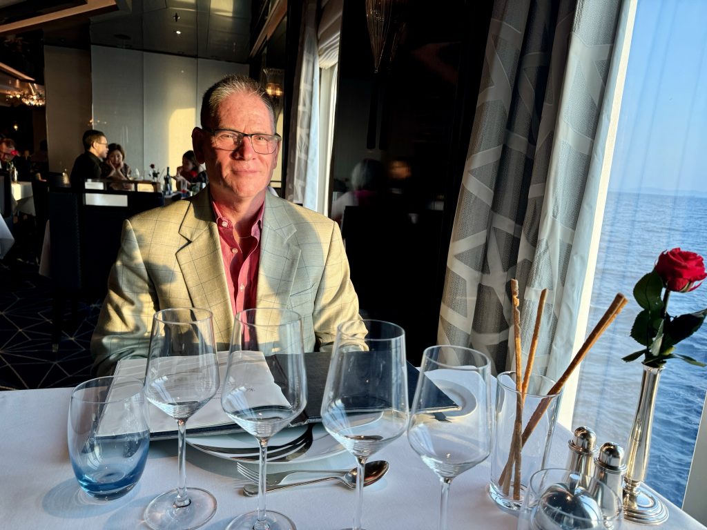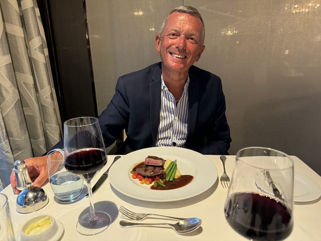 Before long we return to our room to shower and dress for dinner before emerging poolside to enjoy a mimosa, and kir royal. Unfortunately the lovely bar manager Joyce thinks we need more so makes a second round which we feel obliged to quaff before heading down five decks to MDR, the main dining room, for dinner.