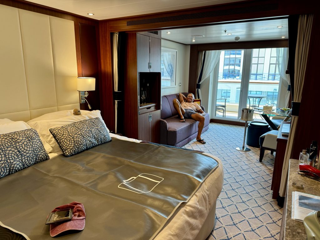 Note to regular readers: we are going to have to get used to all the changes of deck numbers for this journey. This ship, Encore, is one of two larger sized vessels neither of which we have previously sailed on, the most notable distinction being that many things are a deck higher. This may cause some confusion for our first day or two, but we will soon acclimatise!