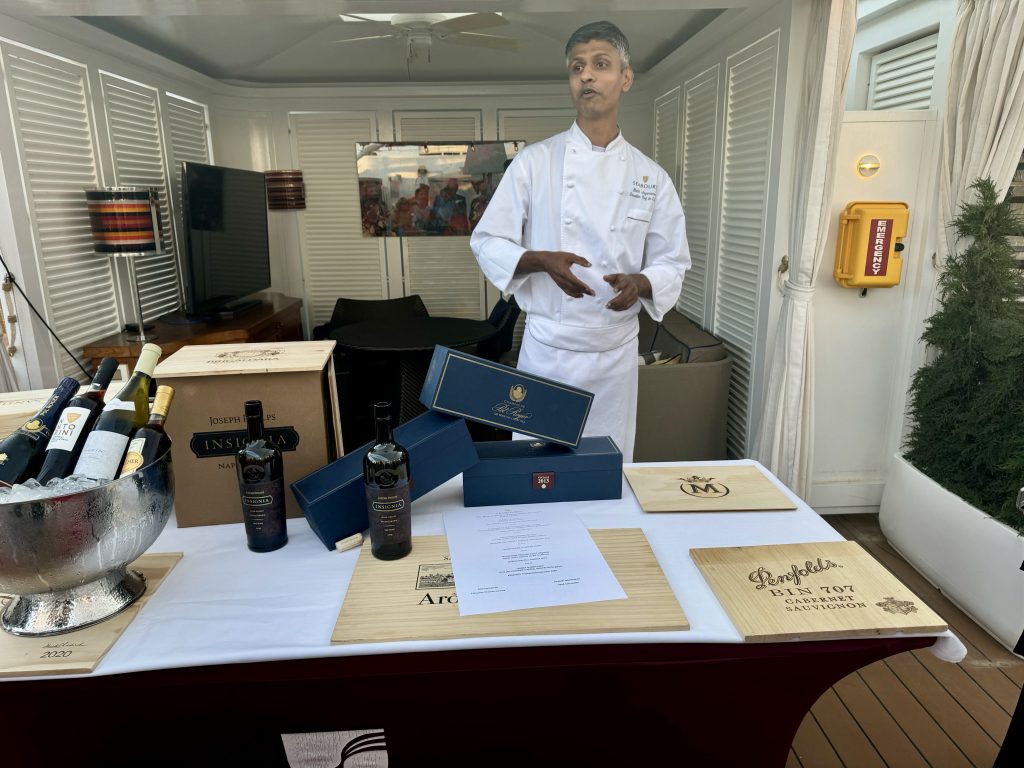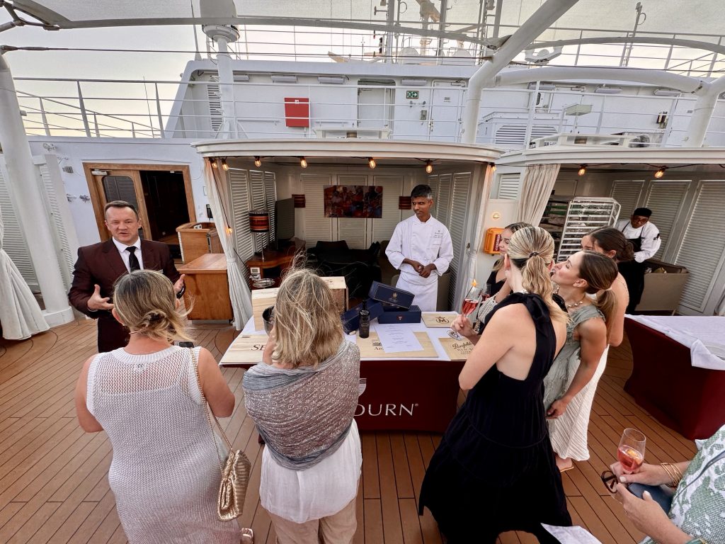 “Tonight we attended this special dinner, with curated wine pairings in the retreat. On the smaller ships we usually use they are held on deck five aft.