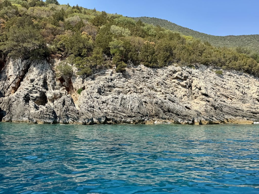 We did this when were staying on Kefalonia for a pre-cruise week some years ago, so know the area. We hop around the many bays, passing others like us and some huge mega yachts too.
