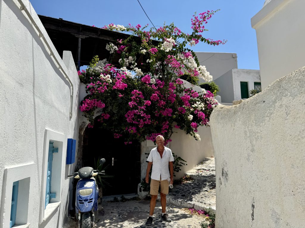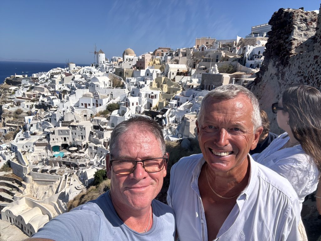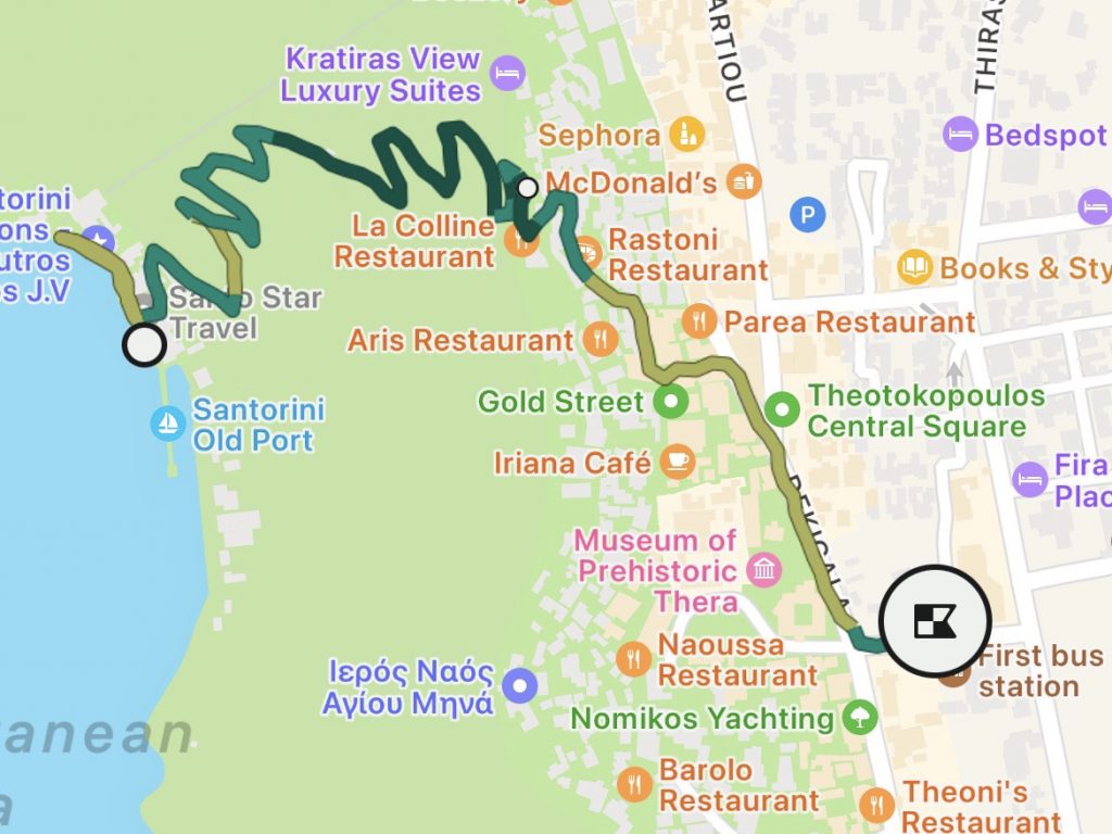 Traffic heading back towards Fira is slow, and in the town it’s a nightmare, also finding the car park we need (translation alert – Vangelis didn’t describe the location as well as he might have) but eventually by luck more than judgement (yes, I will admit to this one) we drop off the car – the saga doesn’t end yet!