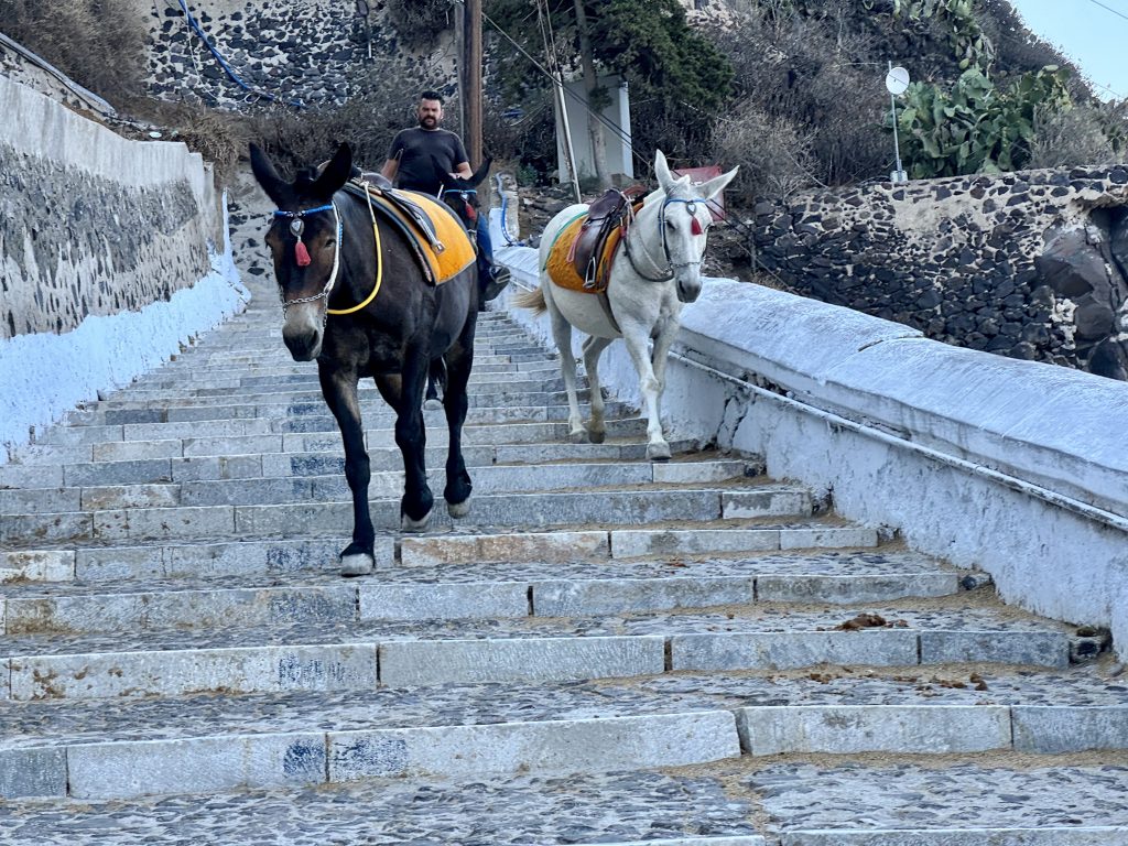 We walk back down, this time taking extra care as there’s a day’s worth of manure now (even though they sweep regularly it’s still all over) and of course it’s hot and we’re tired. As well as the poo there are puddles!!