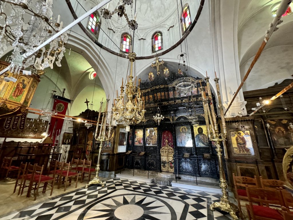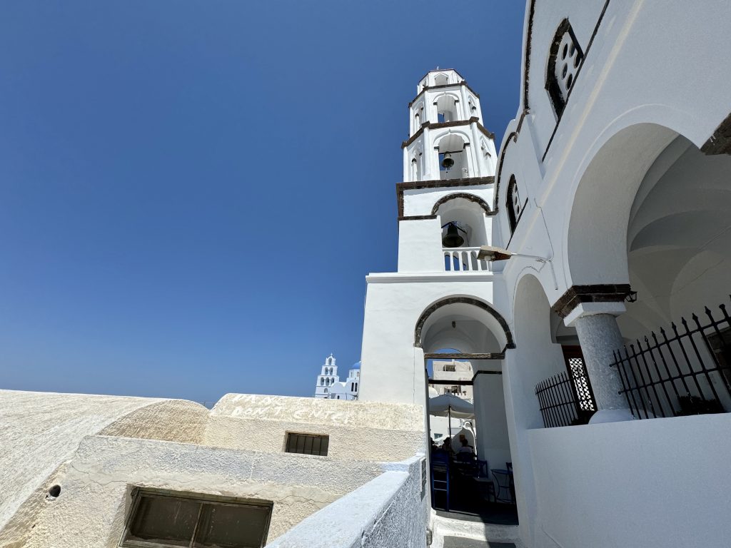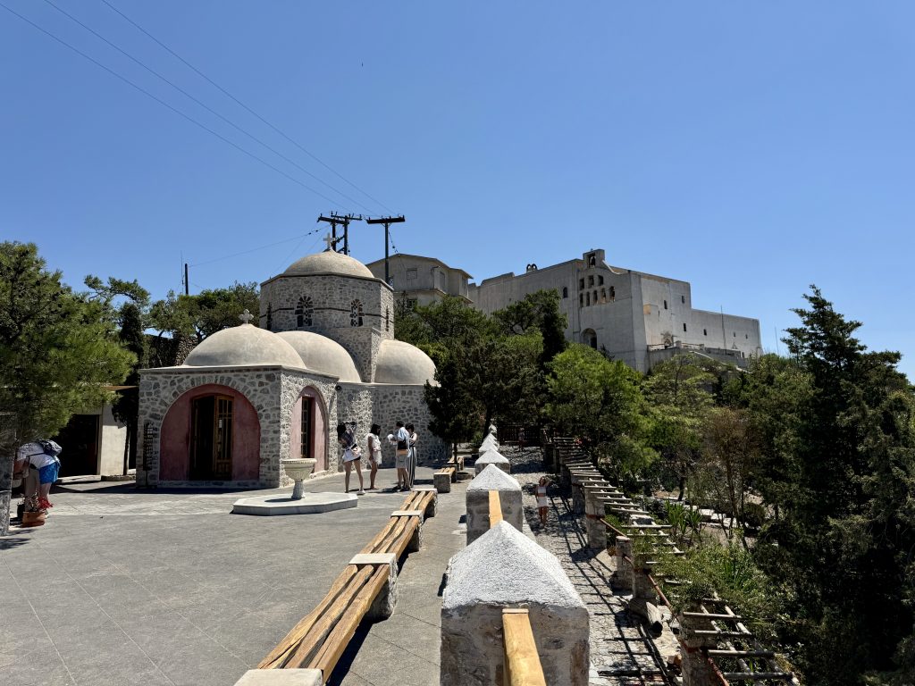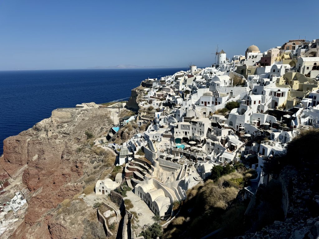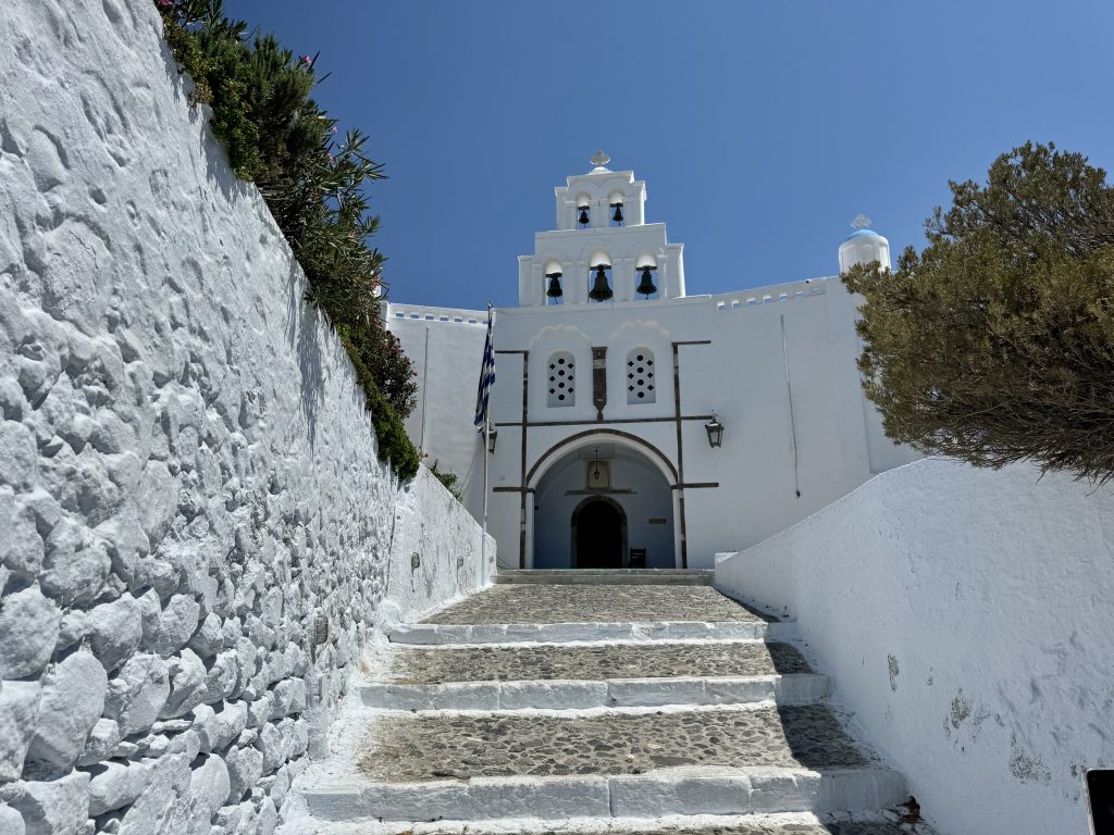 First off it’s Oía, the former capital of the island. It’s just as beautiful as Fira the current capital but has a castle, more precisely had a castle since there’s only a few walls left but we need to stand on them and get the amazing photos. We have coffee and baklava at ridiculous expense before retracing our steps towards and then beyond the airport, heading into the hills to visit the Holy Monastery of the prophet Elias Thira, perhaps he gave his name to the capital?