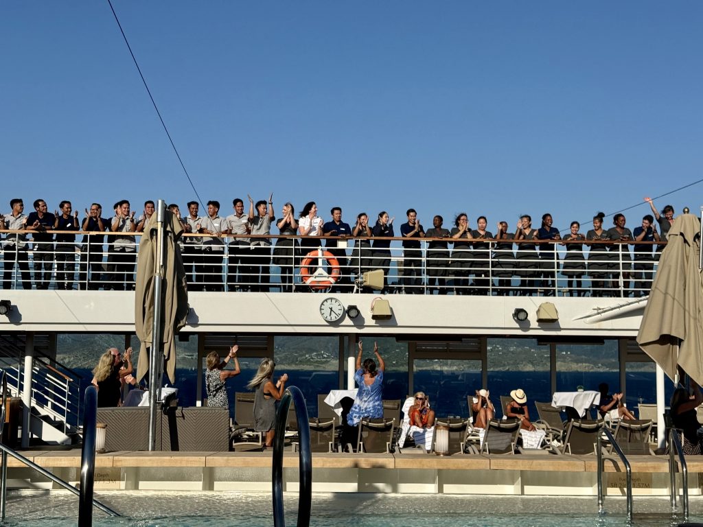 Time to pack, we pop up poolside for the final staff salute, of course this one is real, we are leaving this week. Cocktails and chat with friends old and new, then we dress for dinner.