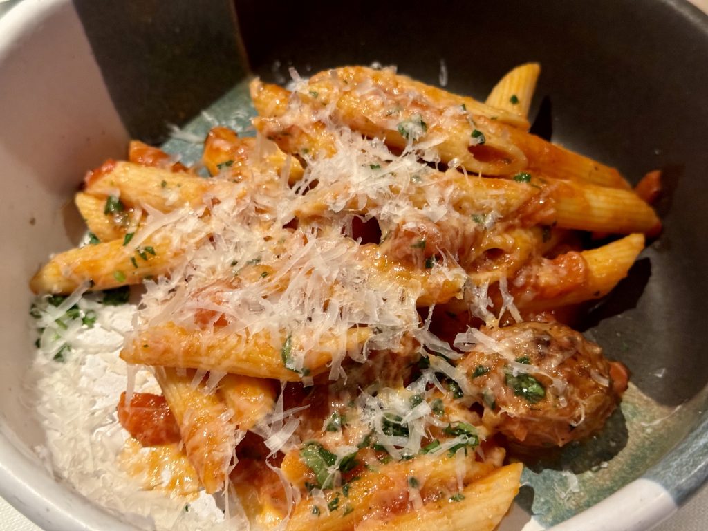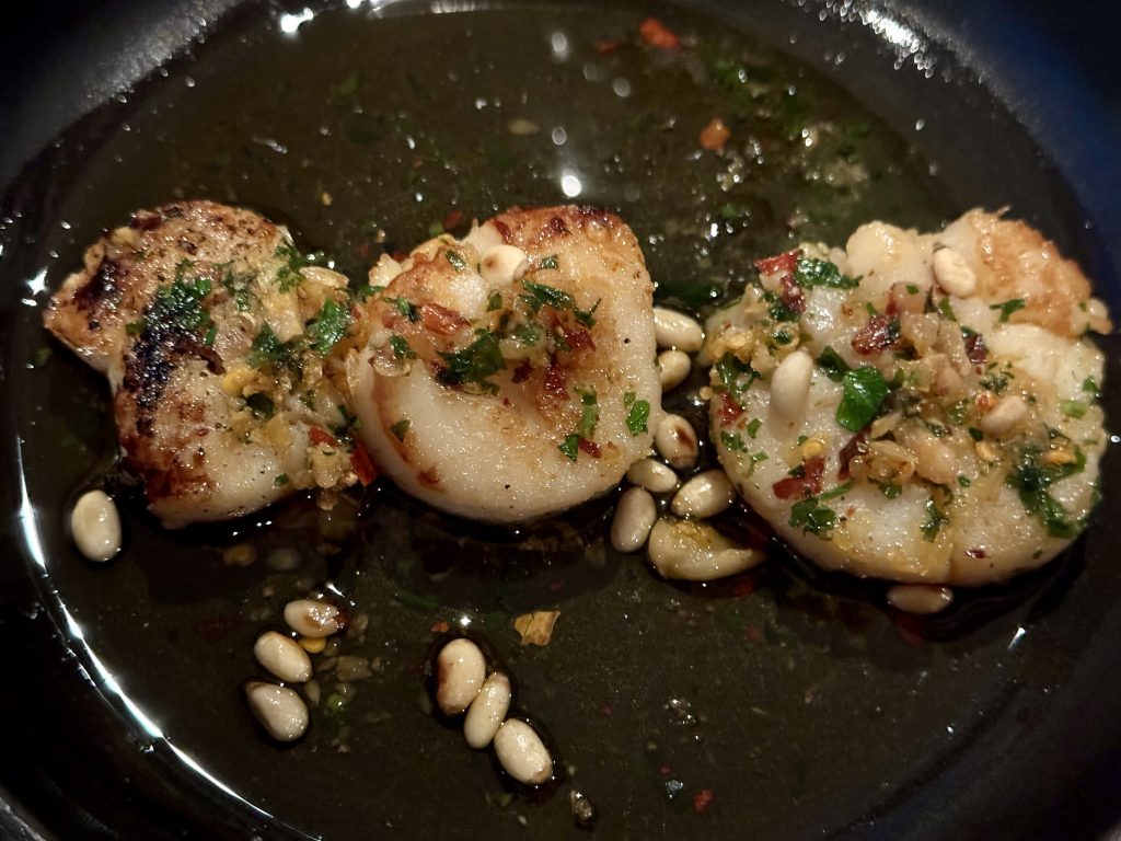 Our starters, when they arrived, are scallops and pasta, both are wonderful.
