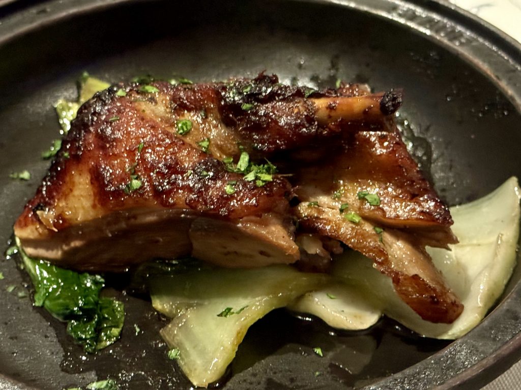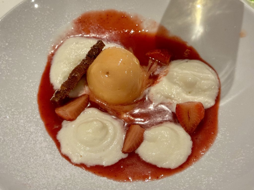 Mains are duck and Nigerian shrimp, for which any normal person might presume lobster!! The duck was good but a bit huge, the “shrimp” was very good – two enormous tails nearly defeated me.
