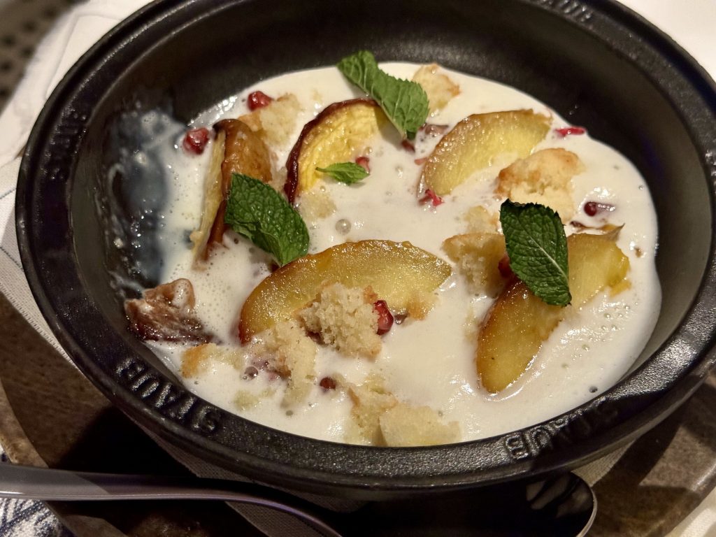 For puddings we had lemon thyme roasted peaches and yoghurt citrus mousse, both scrummy.