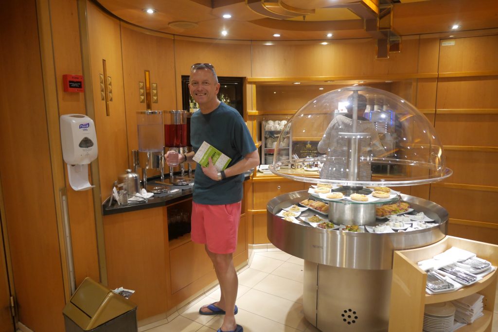 Then it’s get a glass of Chardonnay and lunch in Neptune Lounge, before we attend a wine tasting run by the ships sommelier, we cover a small selection of what’s available in the wine lists at present.
