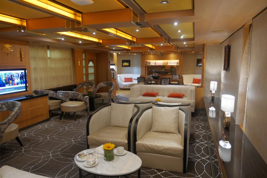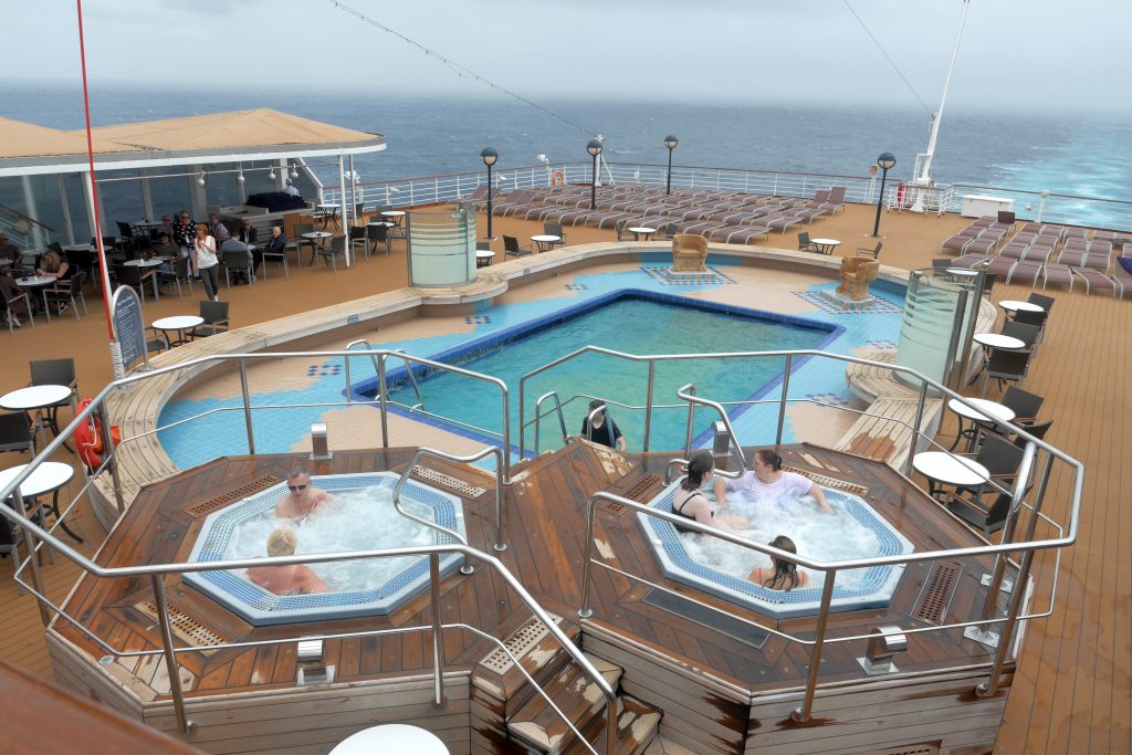 From decks four up to eight it’s just cabins, meaning a large percentage (most of these five decks) have balconies. Then on deck nine, most forward is the gym and beauty parlour, a pool which is indoor or outdoor depending on the retractable roof, then the lido buffet area, a huge space with many stations for different foods, and finally most aft is decking with an open pool and sunbathing area. Lastly is ten and eleven, which I’ll group together. On ten forwards is the large crows nest bar, immediately behind are cabins and then a walking track around the mid-ships pool and finally decking back to the after part of the ship. On eleven it’s just sunbathing on top of the forward structure. There’s no deck eleven midships unlike the Queens (Queen’s Grill) or Eurodam etc (Silk Den and Tamarind restaurant.)