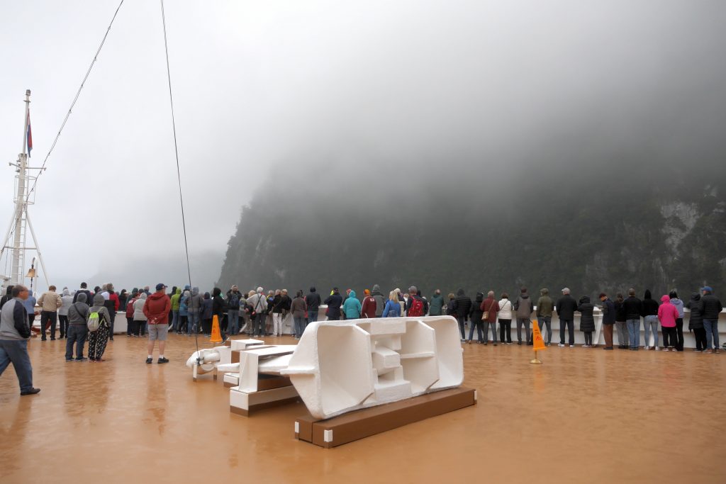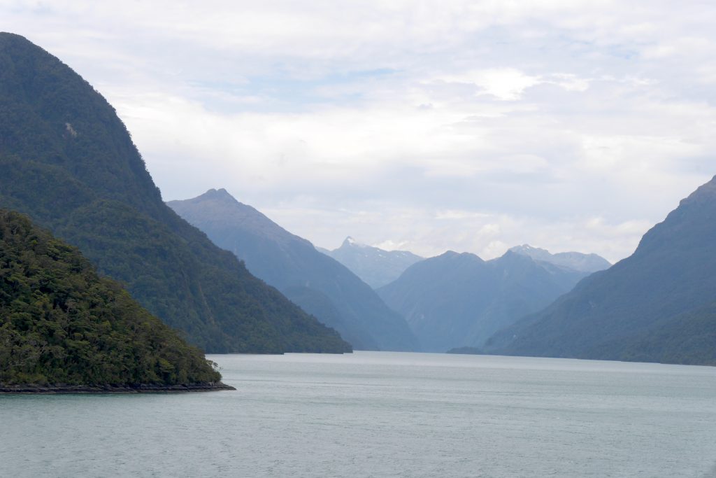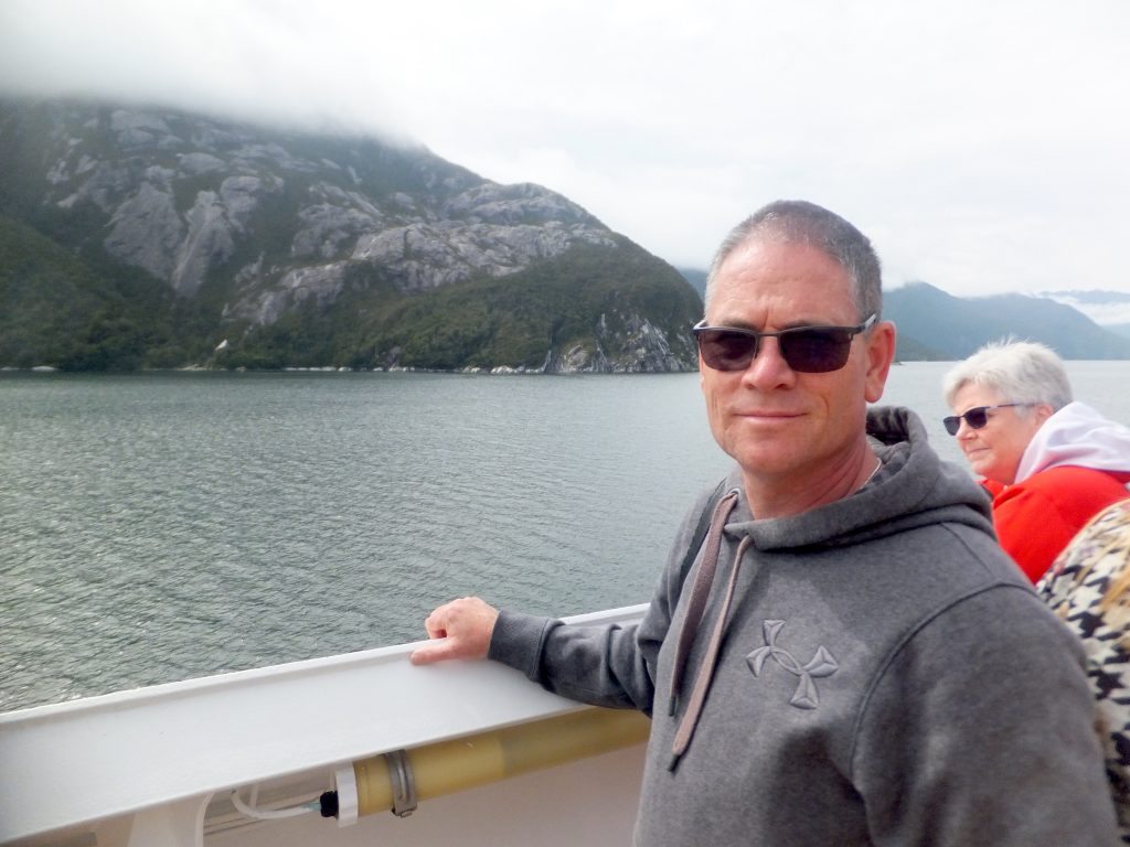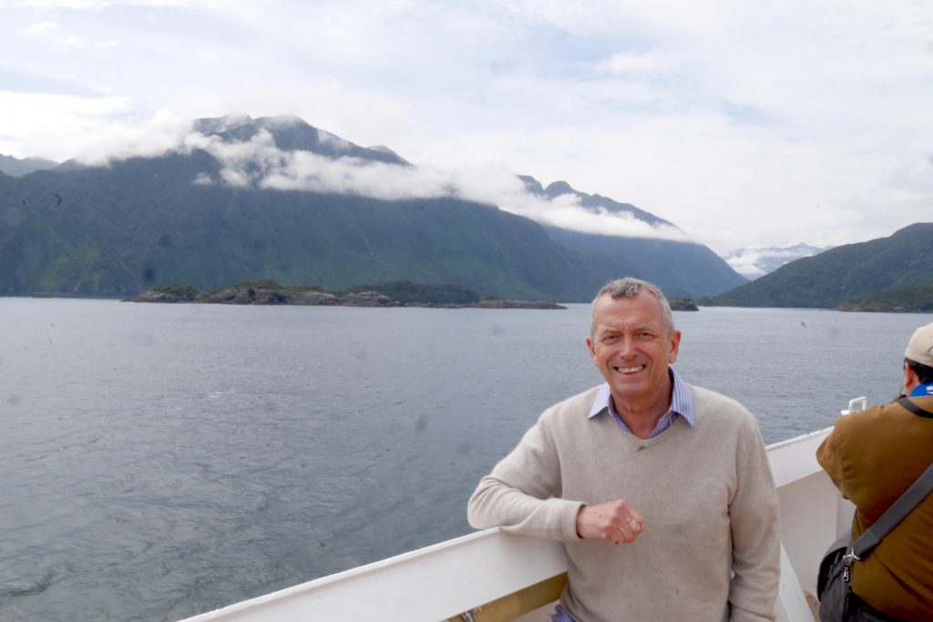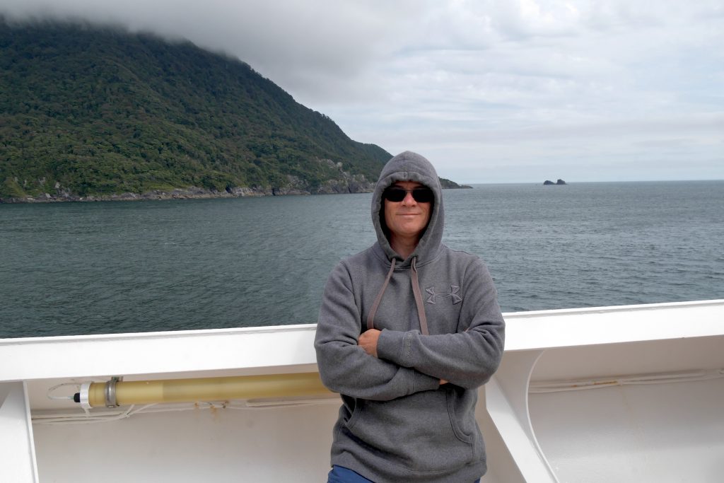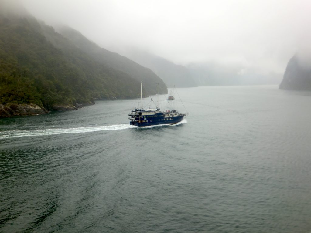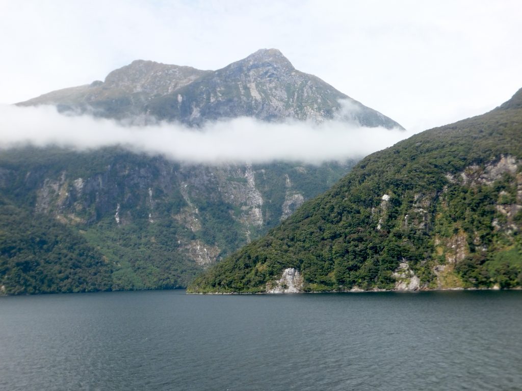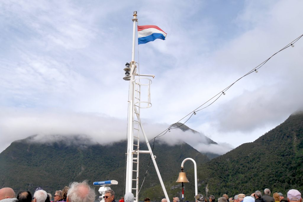Hubby summons me for ham and pea soup around 10:30 which is lovely, something we experienced on our first Antarctica, on this same cruise line – it’s a Dutch speciality. Back to photos and blog for me, until we enter Doubtful Sound. The weather is improving generally and visibility is far better, so we happily hang out on the foredeck again, enjoying the scenery and chatting to fellow trainers, until we’ve sailed around Secretary Island and returned to the sea.