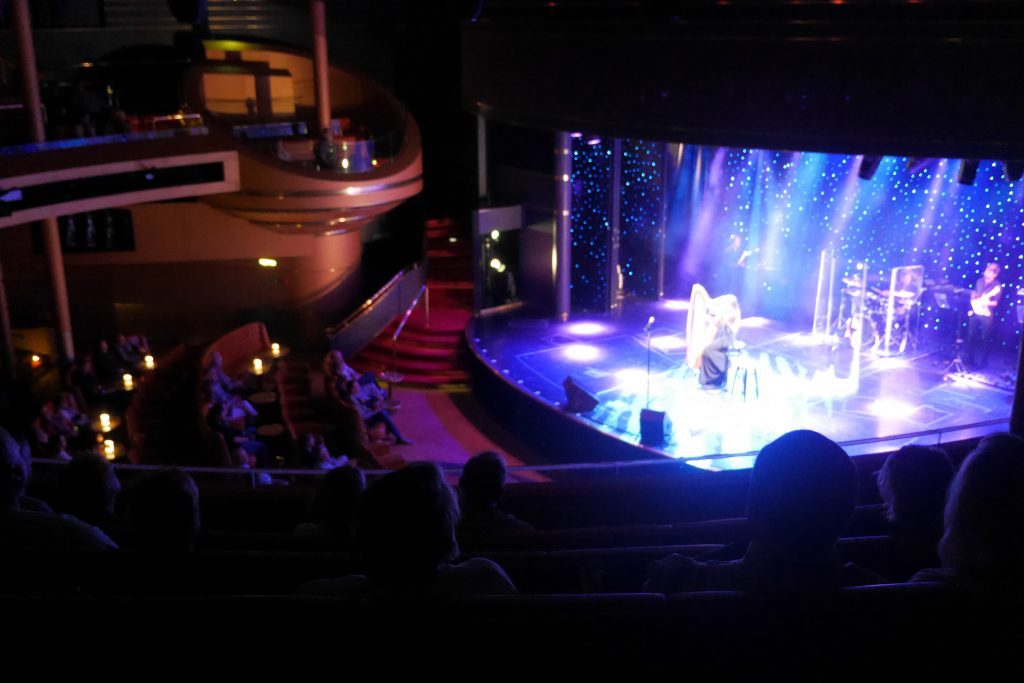 Next we hot-foot to the main theatre to catch part one of show one of the singer harpist Alana Conway who is delightful, singing from Piaf to Ronstadt to Cohen quite beautifully.