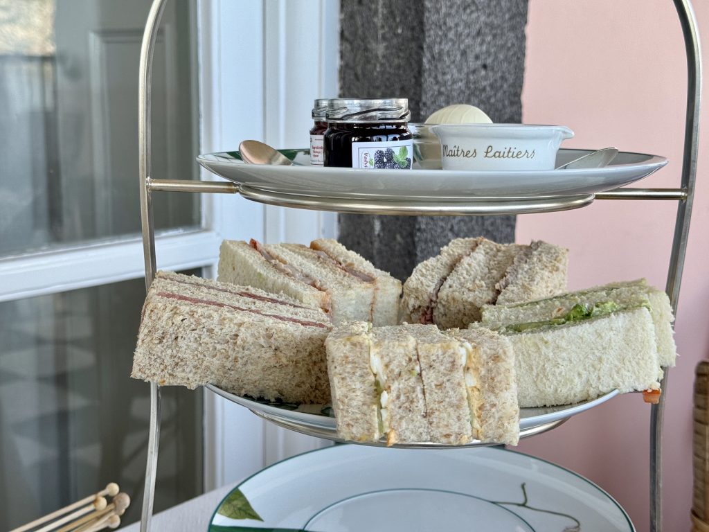 Undoubtedly an excellent afternoon tea, the tea-pots are stupid and a classic case of style over function, but hey-ho it’s a small grumble in an otherwise fabulous experience. Reid’s blend tea is lovely but they also have about thirty other choices. With five fingers of sandwiches, then two scones, we can only share half-portions of cake without risking relinquishing a belt hole!