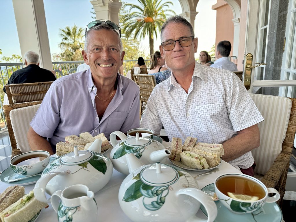 Our final goal today is Reid’s, the iconic hotel much loved by Churchill and as famous as the Ritz, Waldorf or Raffles to international travellers from ages past. We enjoy afternoon tea on the terrace overlooking the gardens which descend into the barranco – unfortunately the tour of said gardens only happens on Wednesdays and Fridays so we cannot visit them.