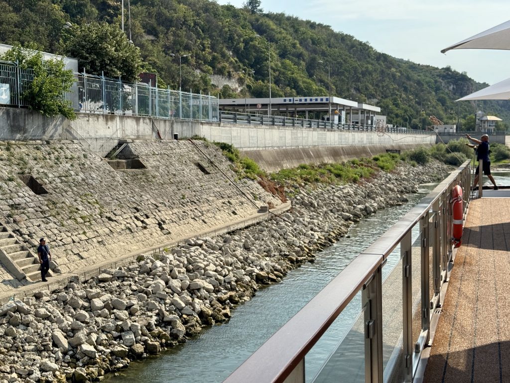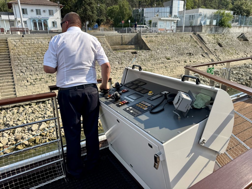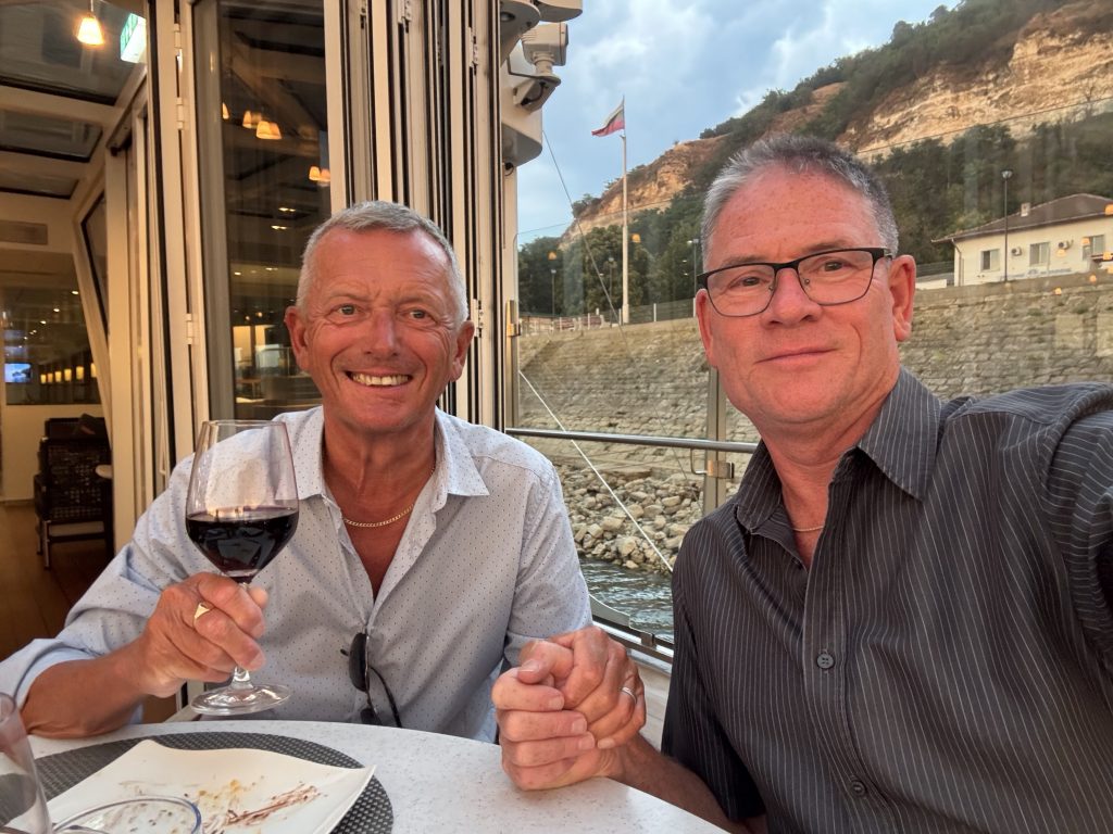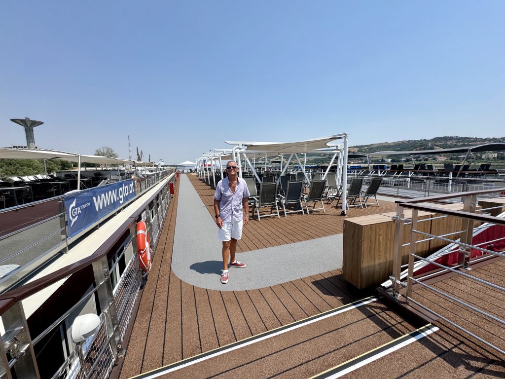 Our departure time is 16:45 so we head up onto the top deck to watch our sailaway, just us, the Captain and a couple of deck-hands. Our journey consists of about half a mile, as we break free from the Bolero parked next to us, and then gently cross from the left bank to the right bank, in doing so we change country from Romania to Bulgaria. The staff secure us to the pontoon at Nikopol, from where tomorrow’s adventures will start.