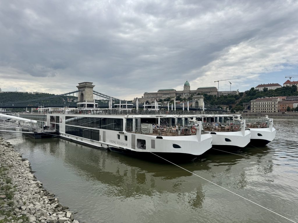 Dinner is early, we think it’s annoying but we have to work around it. During dinner the three Viking boats tied together at our jetty do a shuffle – the outermost boat sails into the Danube, we remain tied to another whilst we then sail out into the river, and the third sneaks back in, pushing us out more into the river, presumably we will be first to leave tomorrow evening.