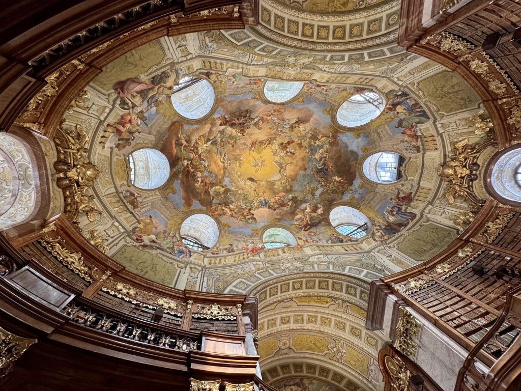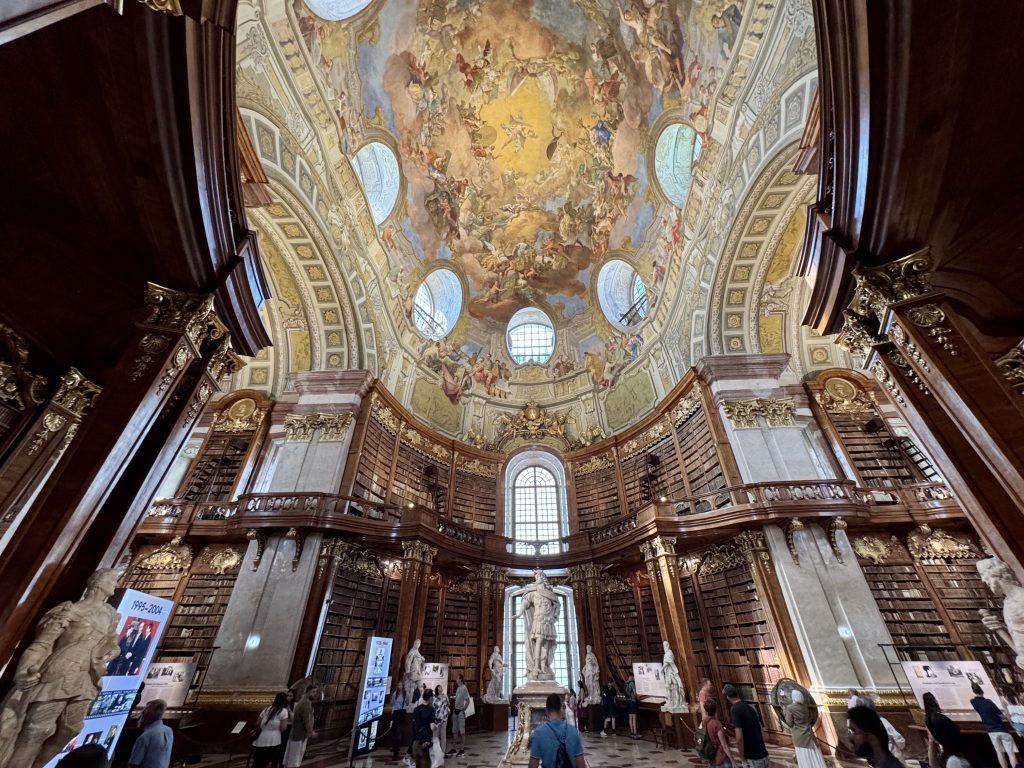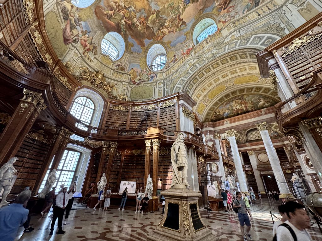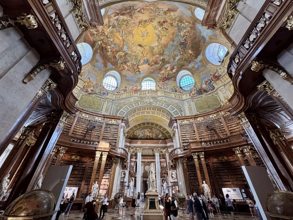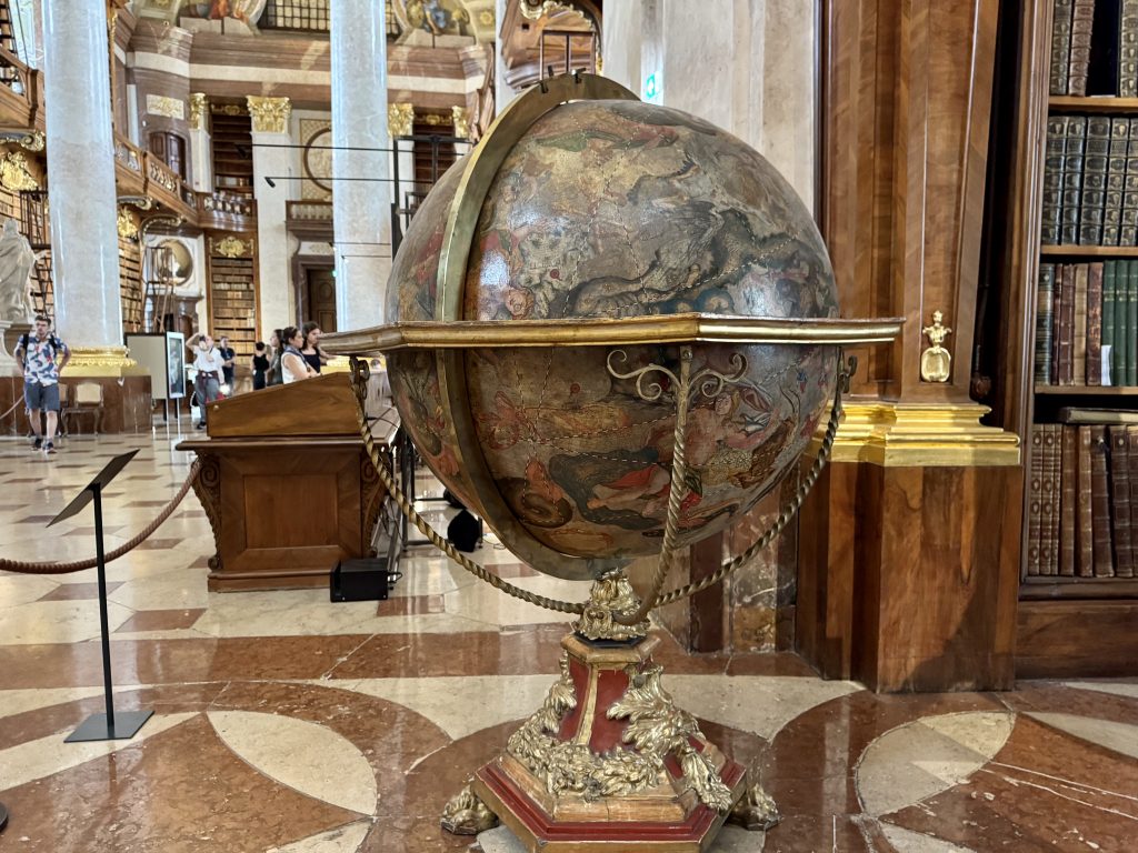 Next stop is the a National Library which is found right next to the Riding School. This is a glorious space on the second floor of a relatively recent wing of the Hofburg Palace and has its own entrance. Here an 80m room is packed with 200,000 ancient texts, all digitised and freely available to anyone, however the originals are a visual spectacle. Four beautifully detailed Venitian globes can be found in the central section.