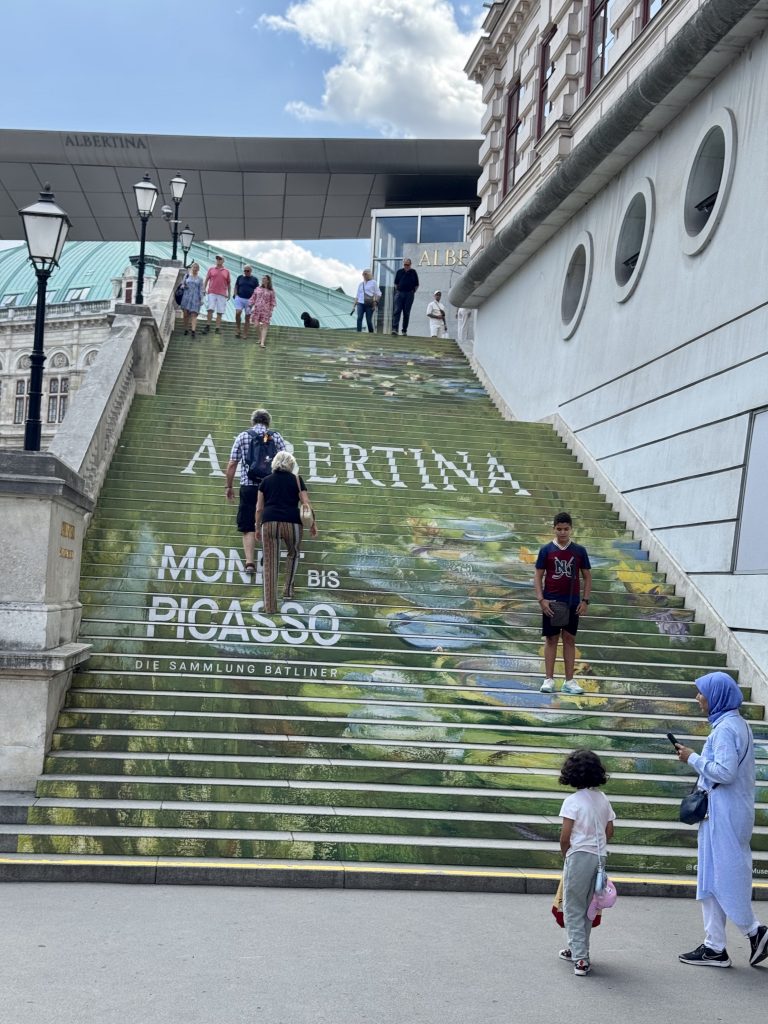 Our next destination is the Albertina gallery which is right next to the Opera House. This is a former Hapsberg palace, in particular for high ranking officers. Now it is a gallery on four floors with a collection of state rooms thrown in for good measure. There is a lot to see, I’m only showcasing a few items. We see Picasso, Monet, Munch, Mattise, Chagall, Degas, Toulouse-Lautrec, Renoir and Klimt that we can remember.