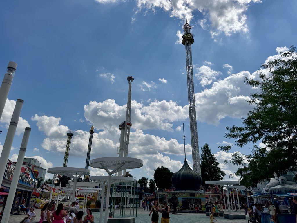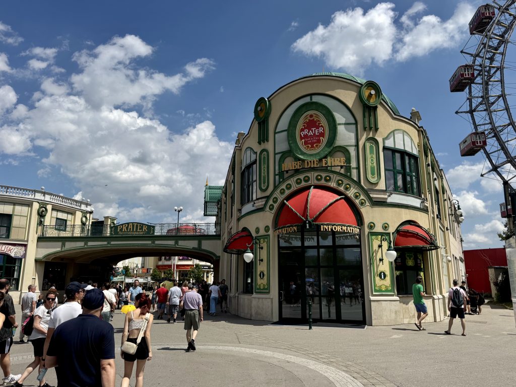 Walking past the Stadspark we check out a few statues of notable Austrians, some of them famous composers, and then set off back home. We cannot resist the temptation to walk through Praterplazt and enjoy the strident screams of innocent folk who have paid good money to be scared to death on the many insane rides here in the amusement park.