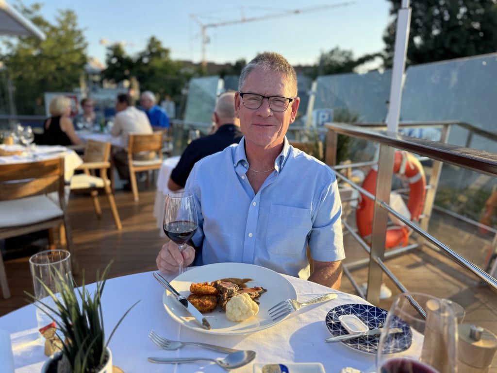 Dinner tonight is seerved early once again, we don’t really understand this, although given that some customers have an 03:00 departure perhaps there is a small degree of compassion? For the rest of us it’s a tad early be we make the most of it, and after-all there’s a lot of kissing and hugging to be done!