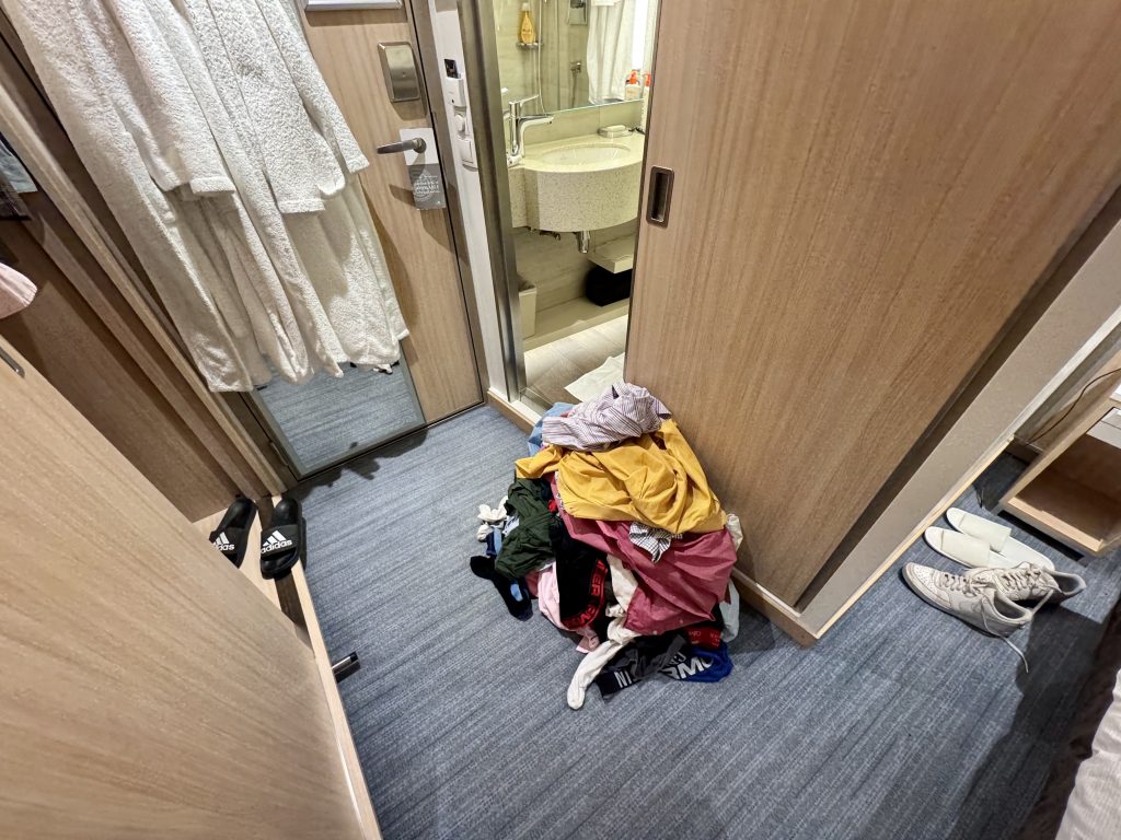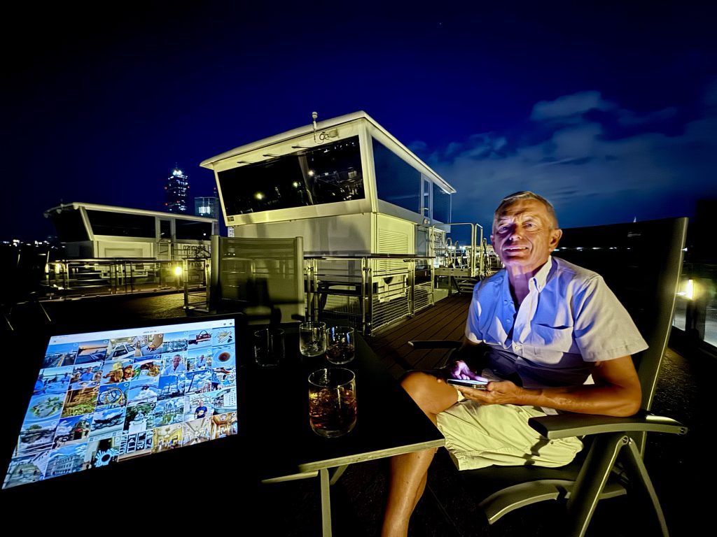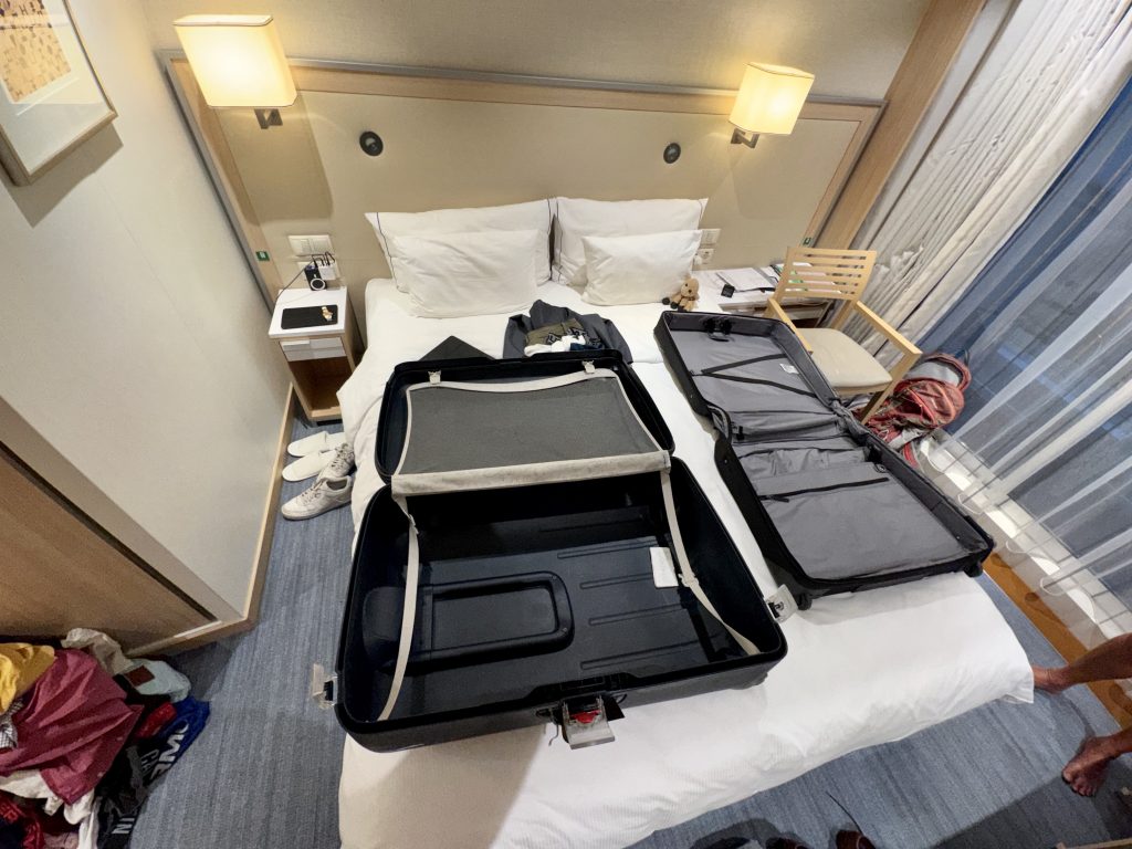 Packing (by hubby) takes 30 minutes and then we are done, ready to hit the upper deck with support from the bar for the rest of the evening.