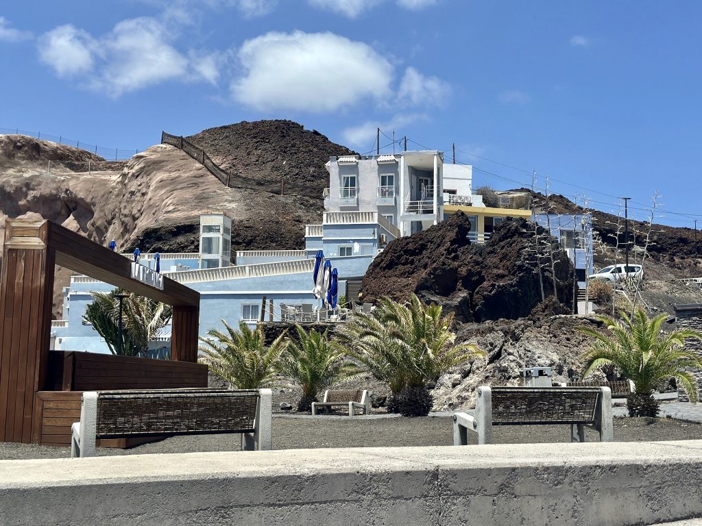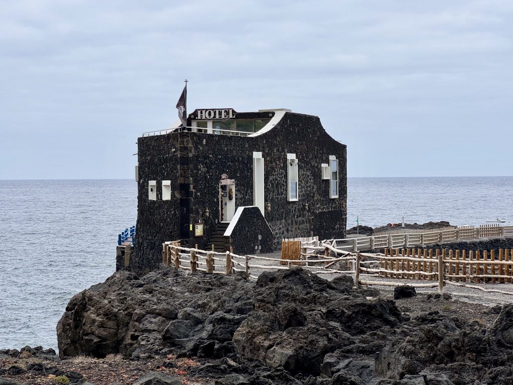 Because it’s not been worn down by millions of years of weather, El Hierro has a dramatic profile, much more that nearly all the other islands. Getting from A to B involves some very circuitous routes, and we start by heading all the way North past the airport to cross over to the North Western shore. Here we find the world’s official smallest hotel on the wildly inaccurately named Punta Grande.