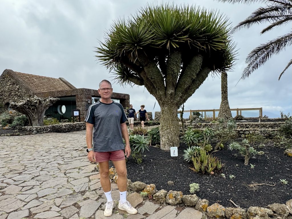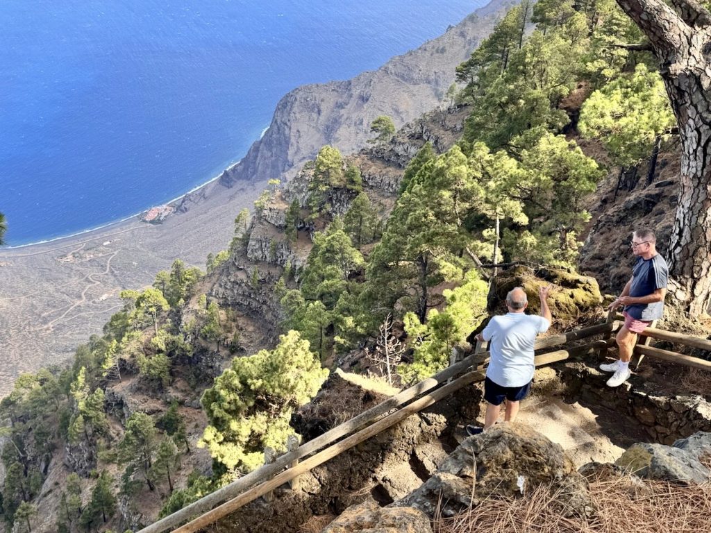 We return via the Cueva del Don Justo, at the end of a 6 km lava tube, and also visit the geopark visitors centre for a lesson on the science of the area. Our last stop is at Mirador de Las Playas, this is lodged into the tree line of the ridge high about our hotel, in fact 0.7 miles above. If only we could fly we could get back to the Paradore in minutes, instead it takes nearly an hour even though we take the most dramatic mountain roadway, rivalling some of the worlds greatest rollercoasters.