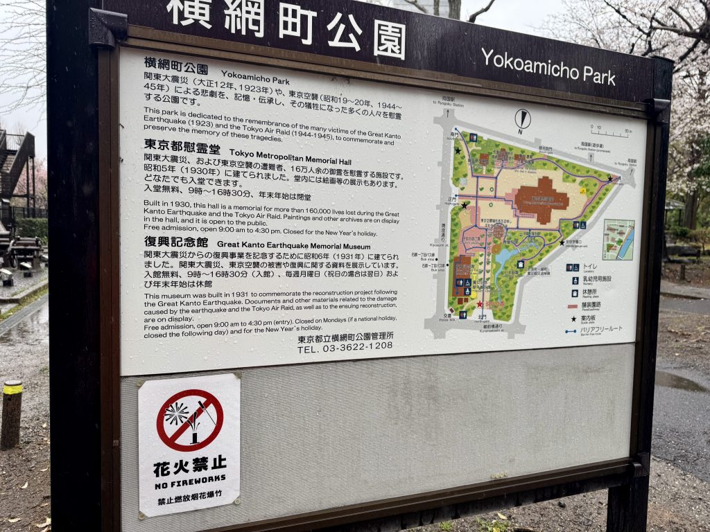 As we walk we pass a park dedicated to the memory of the 160,000 lives lost in Tokyo’s 1923 earthquake, a moving memorial to such a terrible disaster, the WWII dead are added later.