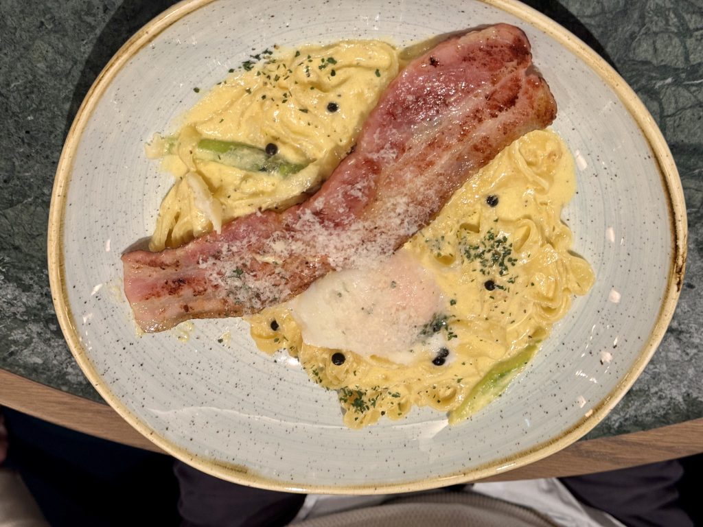 We have located an appealing restaurant, but it’s full – we quickly realise that nearly all small eateries are full from opening and lots of folks seem quite happy to queue but we wont – so dinner is at the Marriot which is nice enough – carbonara and steak curry plus a crazy priced but rather good Californian Chardonnay.