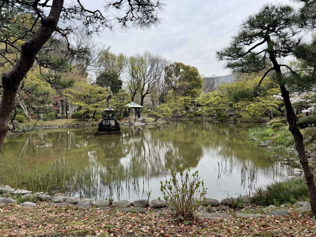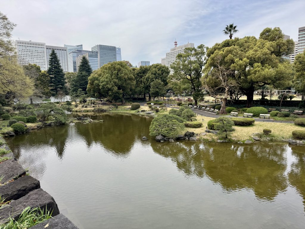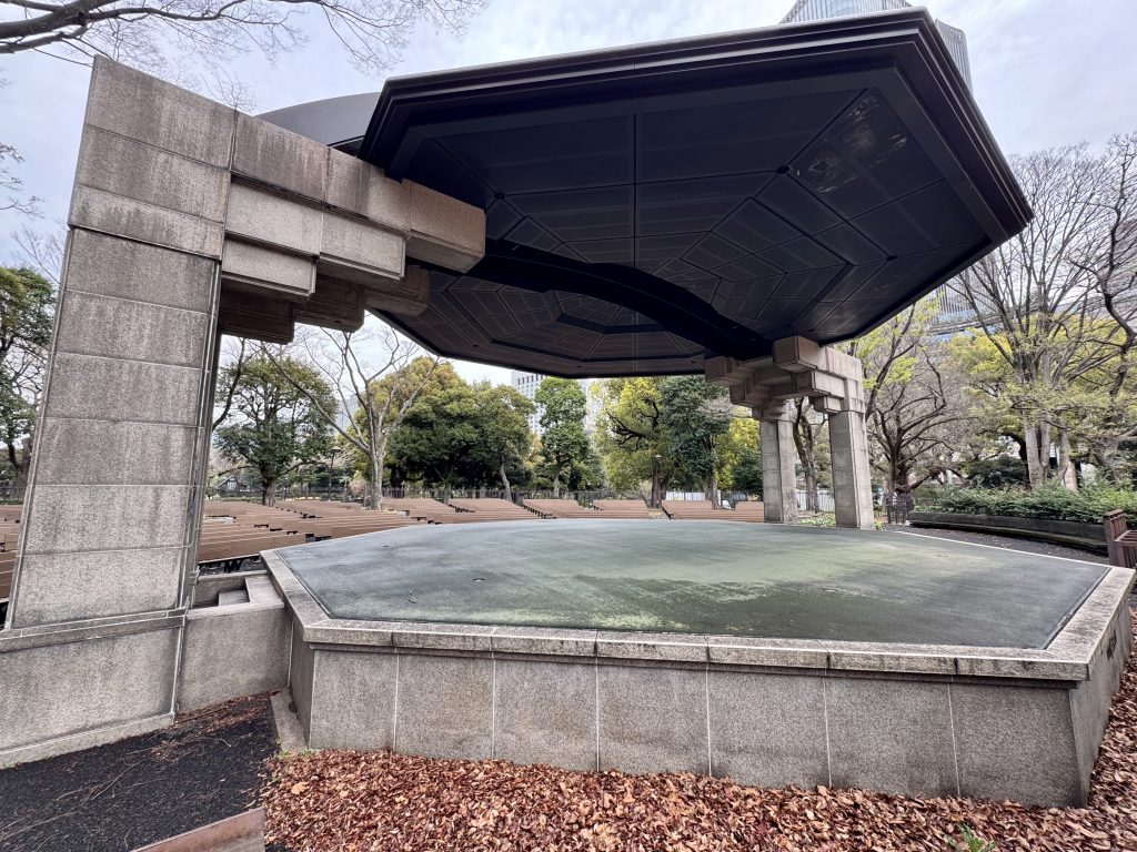 We know this is a commercial locality with all the right shops, but ignore that and head past a fabulous art deco building in the direction of the Imperial Palace gounds, not to go in but to visit an adjacent park which has caught my attention because it seems on Google Maps to have not one but two outdoor amphitheatres.