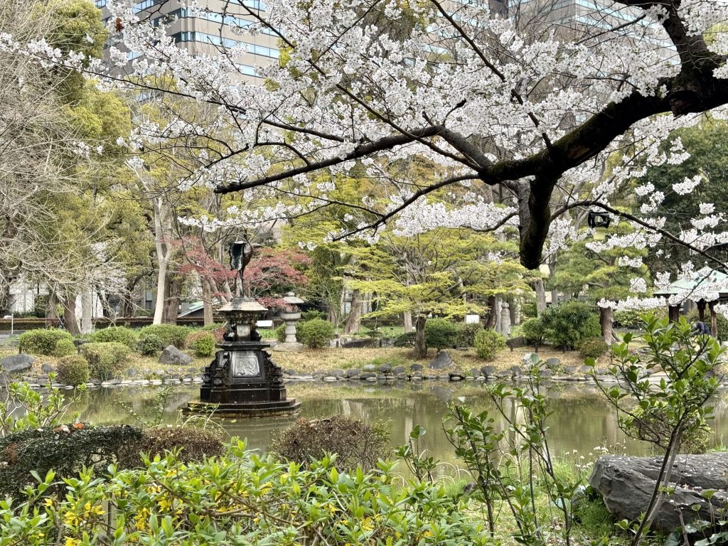 Enjoying the blossom as we wander, we pass a parade of Ginko Biloba trees with a fascinating story, and onwards to the second amphitheatre. This is less interesting as it’s closed off and perhaps not in use. The various lakes are very elegant.