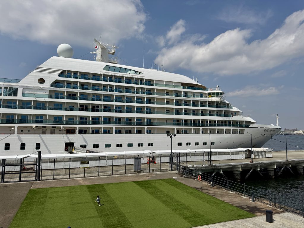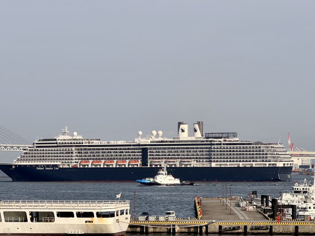 A very respectful driver, we are whisked the 39km to Yokohama Cruise Terminal without stress, although I note on MarineTraffic that Quest is not parked where we had told the transfer company, but at a smaller quay. With my elementary three-word Chinese and lot of pointing at his SatNav he accepts the plan change and we get to the correct dock. We later find the email that told us about this, but not the transfer company!!