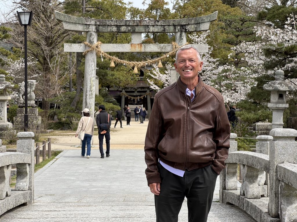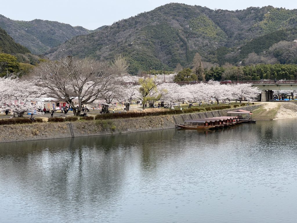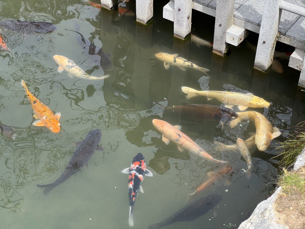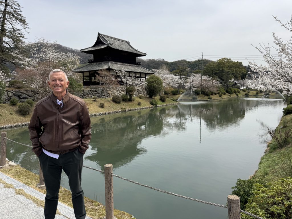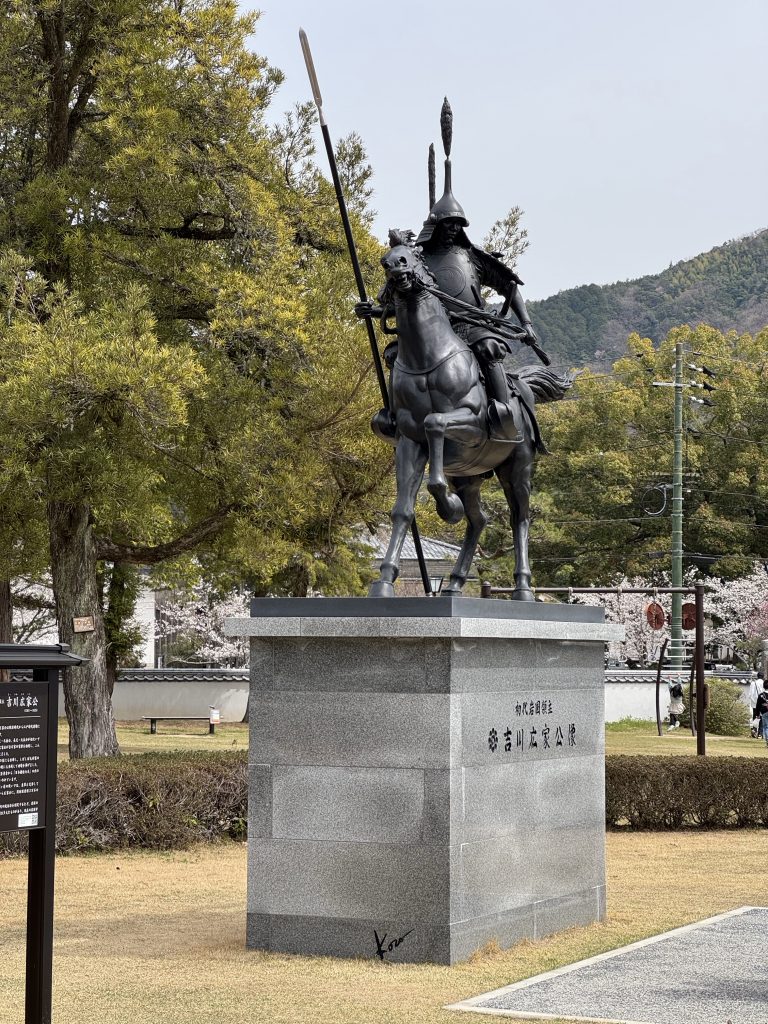 In 14 minutes we have traveled 40 km to the gorgeous old town of Iwakuni. It’s a former Samurai town built around a castle by warlord Kikkawa around 1600, his soldiers and offices occupying many houses below, which is where we are exploring.