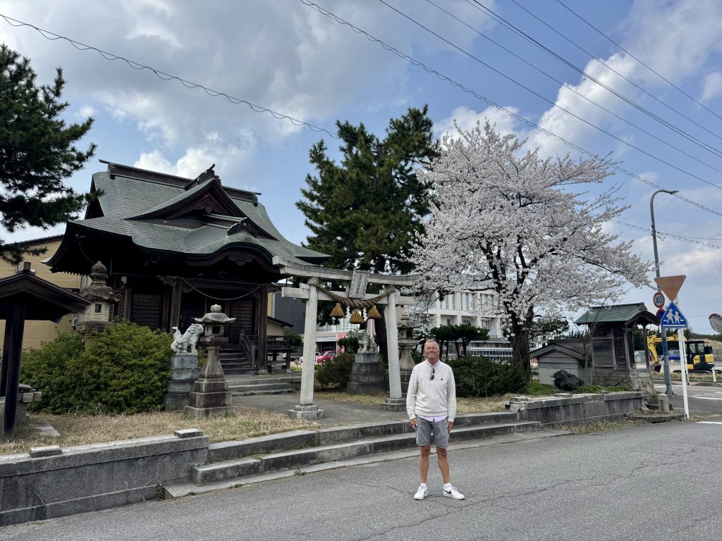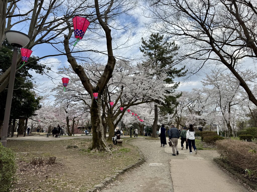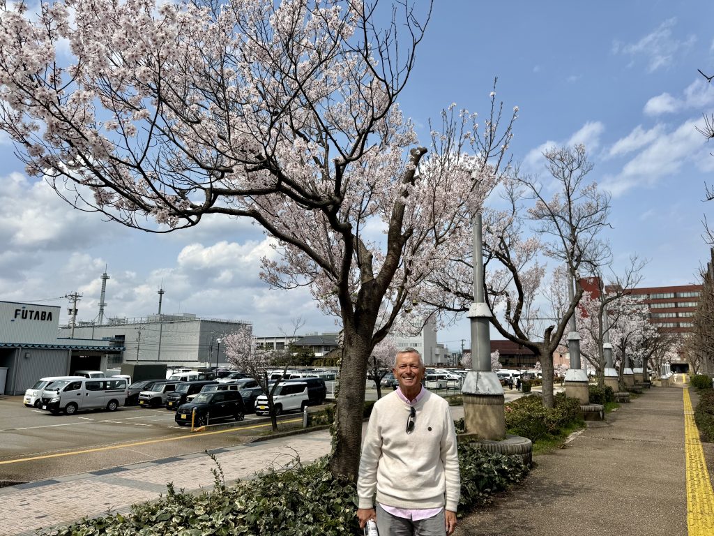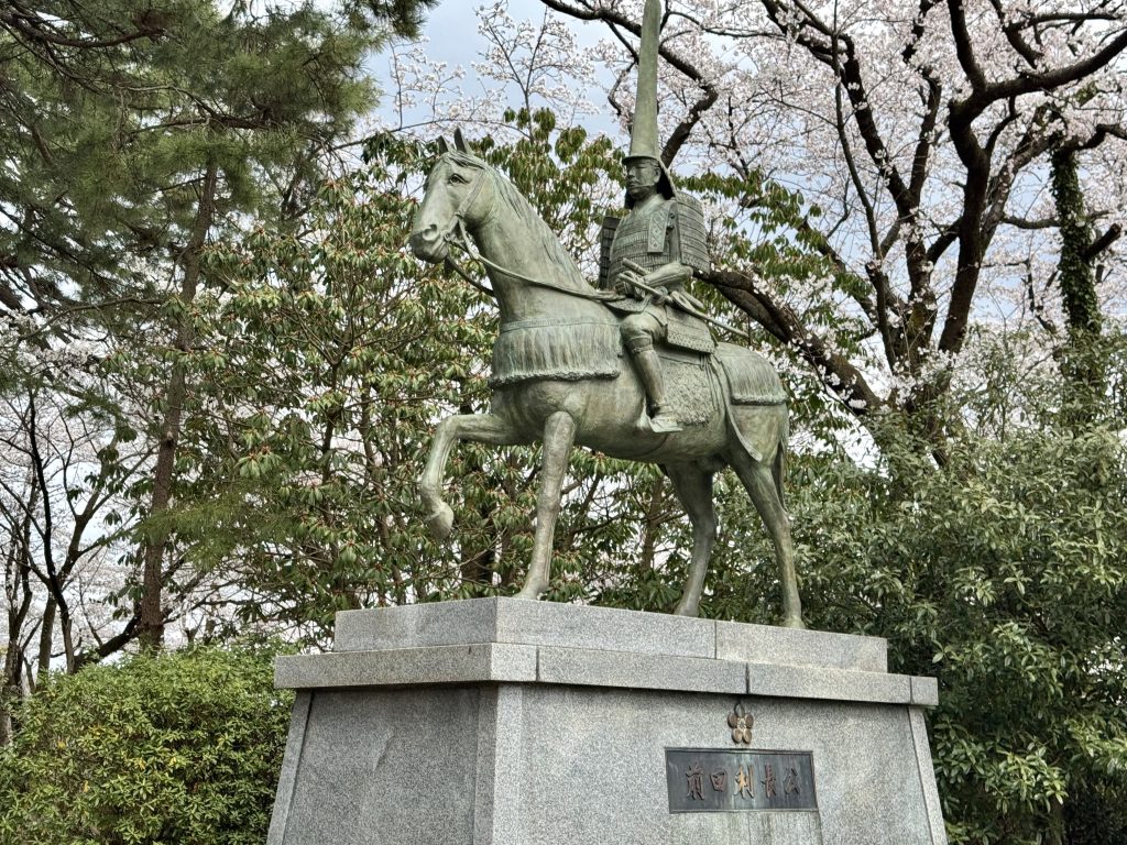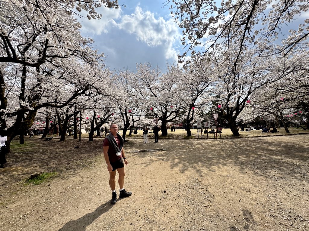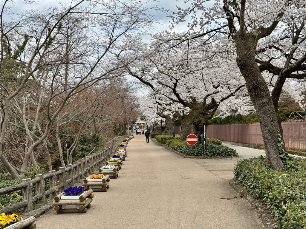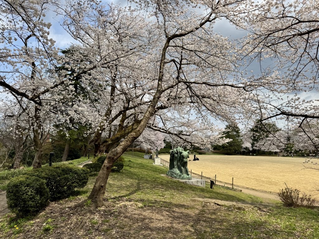 Finally we visit the Kojo Park, where the moat, from the castle built in 1609 and soon after dismantled, is all that remains. However the grounds are now home to a temple, sculptures and trees, currently in full bloom.