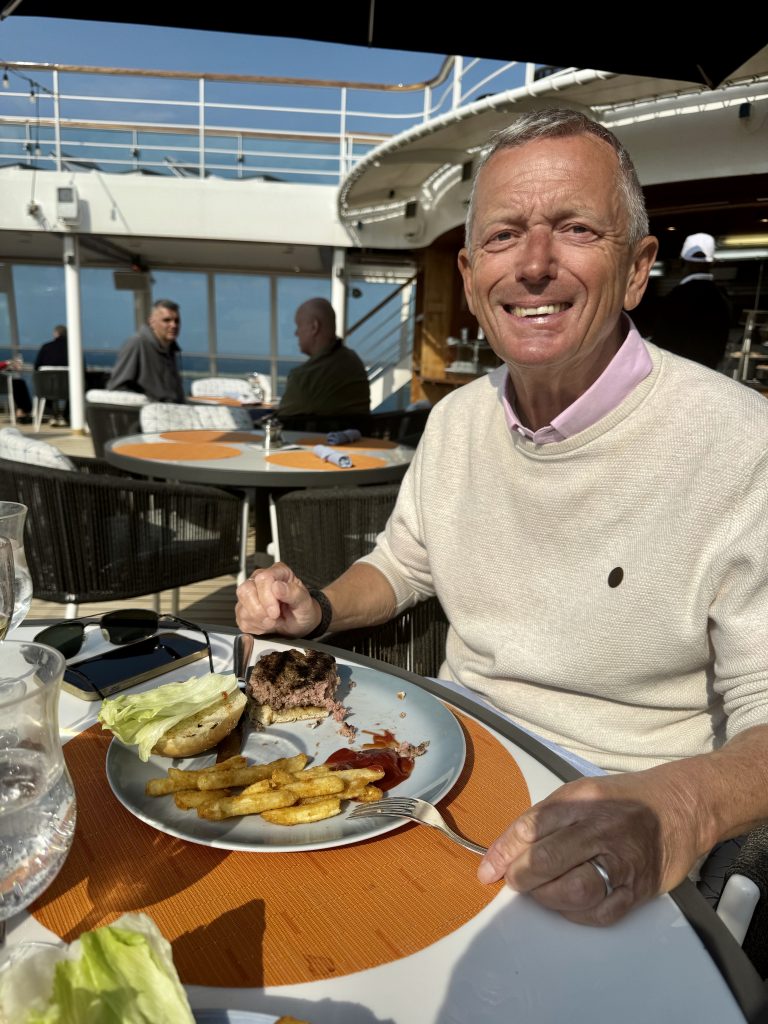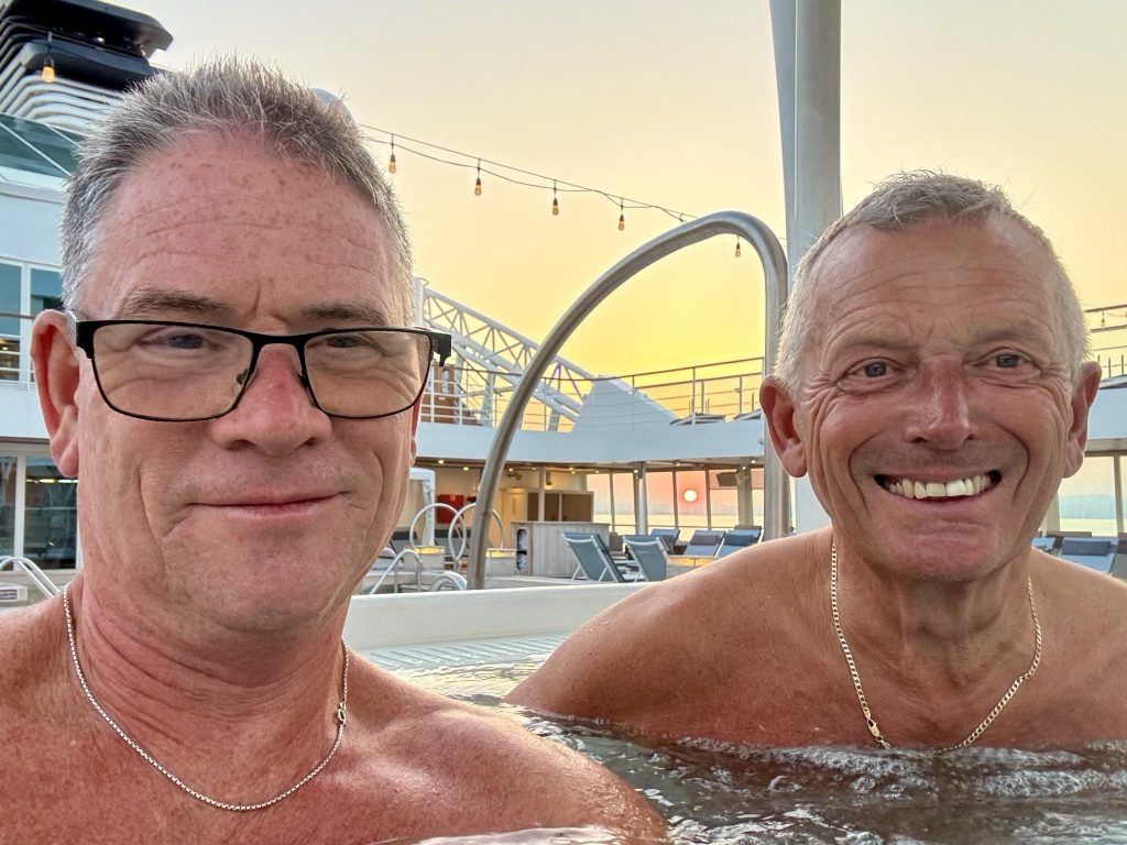 Tragedy has struck – our forward jacuzzi is closed, maybe becuase it’s too hot for most – who knows? Anyway we go to deck eight and have a nice champagne relax for a while and watch the sun set – it may be the Land of the Rising Sun to Westeners, but when one is here Japan offers all options!