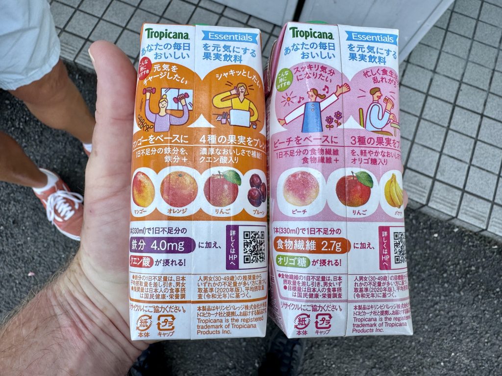 As we return we pass a Family Mart and having only had 2½ courses for breakfast (I realise this is a troubled sentence … as you asked, we shared a banana muffin at the end) we decide to get a power bar as well as a drink.