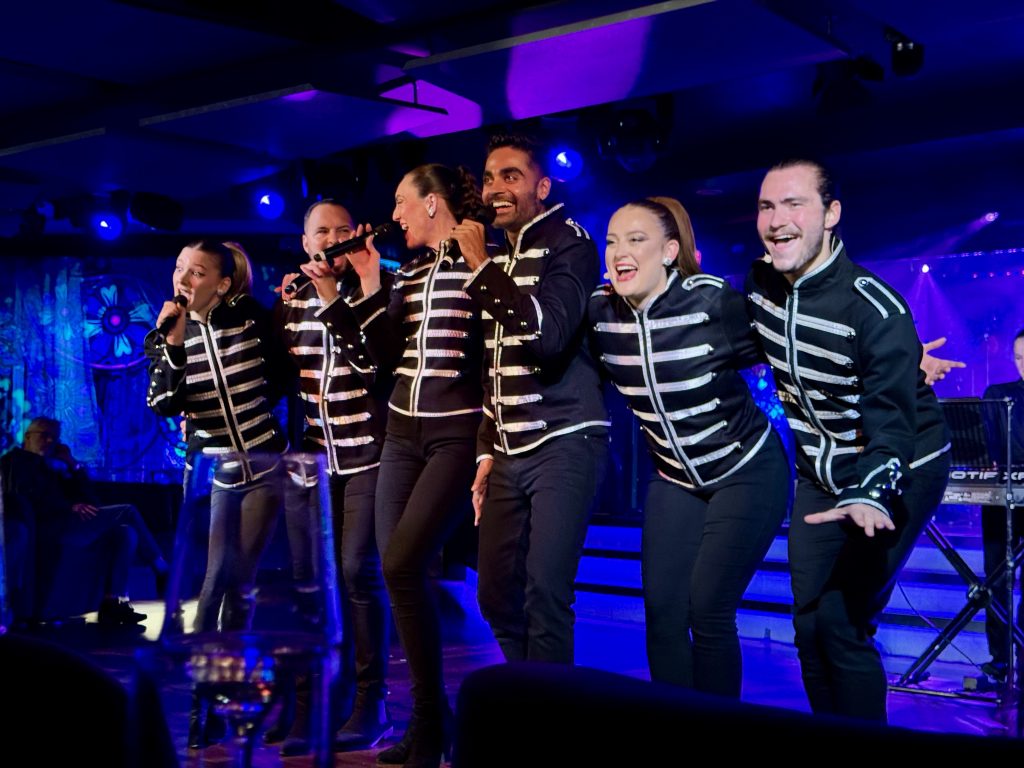 Tonight’s wonderful performance by the Seabourn Six is Live and Wired, a new production for us. Starting with an a capella rendition of Toto’s Africa it goes from genre to genre and generation to generation encapsulating the fifties, sixties, eighties and more.