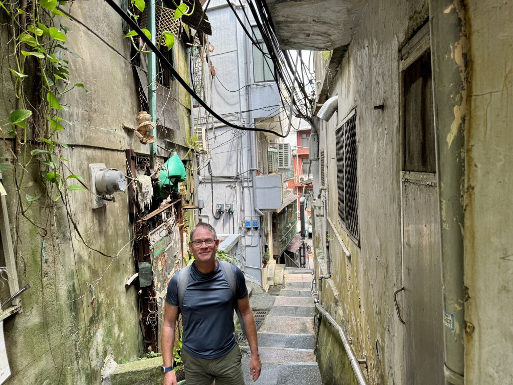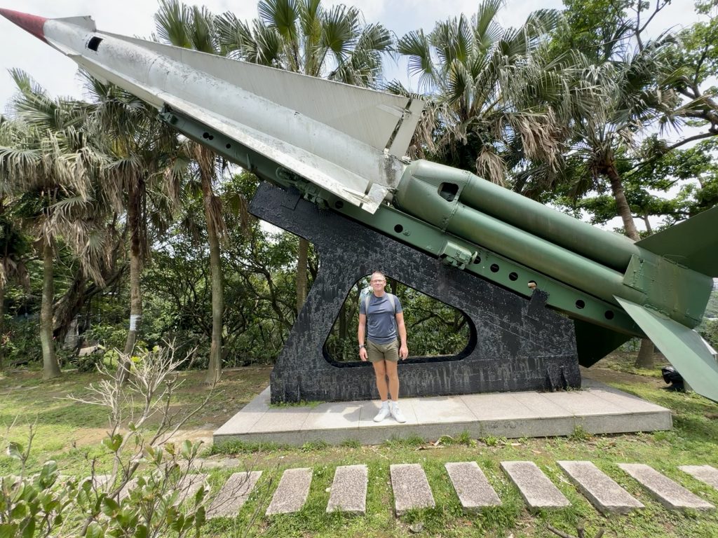 We’re spending our second Taiwan day in the port of Keelung where we are parked. It’s 32° and high humidity so we rip up our planned 10+ mile adventure and decide to stay more local.