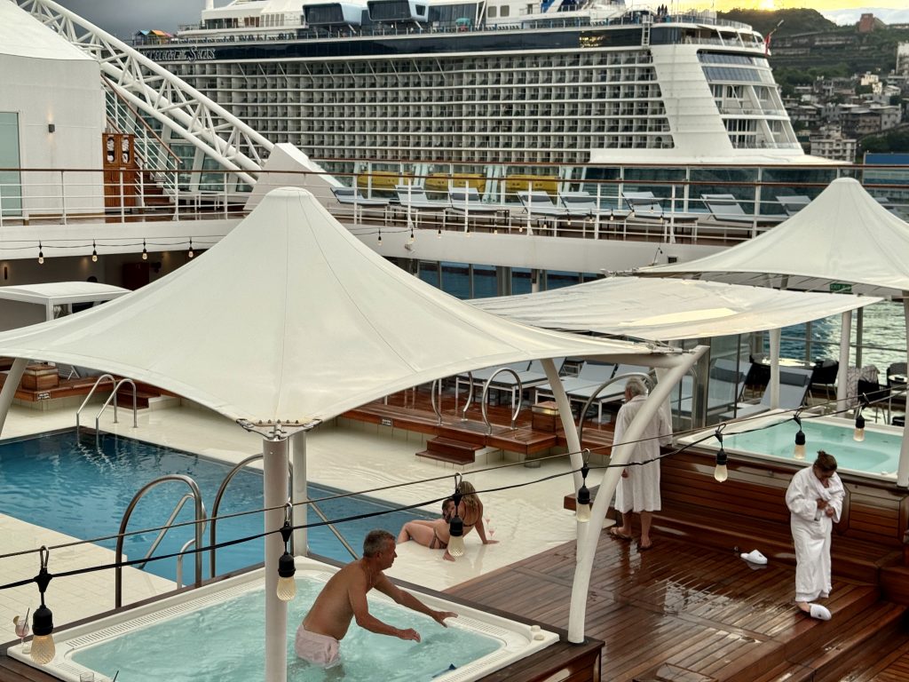 Jacuzzi time requires a Raspberry Daquiri and Mud Slide which we enjoy in the pouring rain, the first we’ve seen in Taiwan. Joyce looks after us perfectly, as she has for several years when our paths cross.