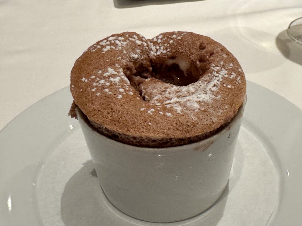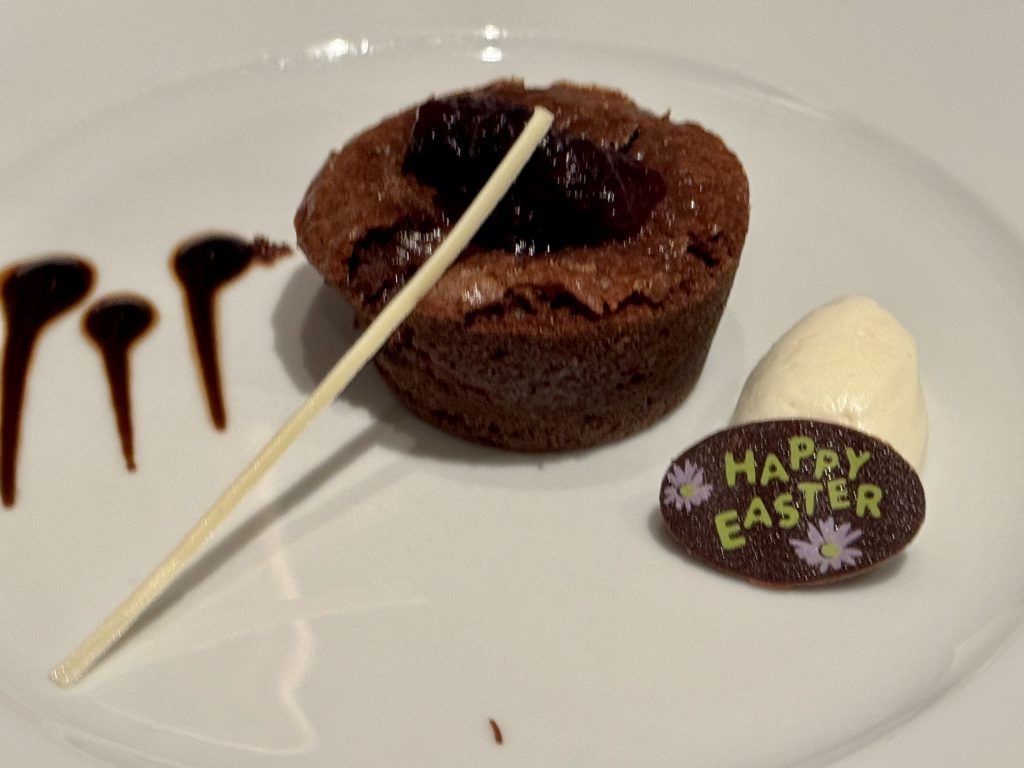 Dinner in MDR is just perfect – excellent service and fabulous food – crab cake, clam chowder and stroganoff for both, then brownie for Hubby and dark chocolate soufflé for me.