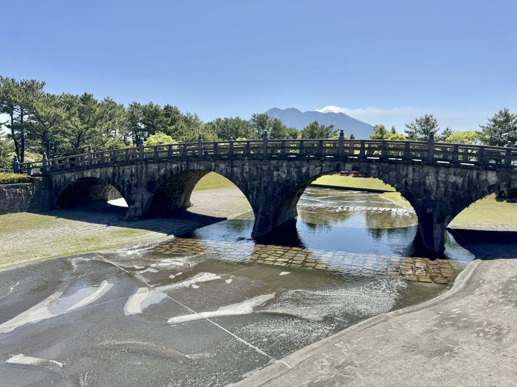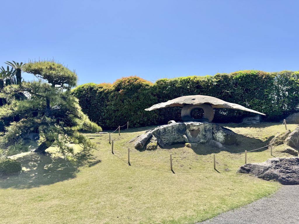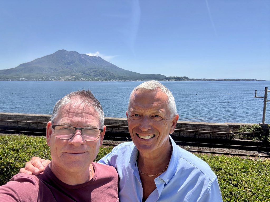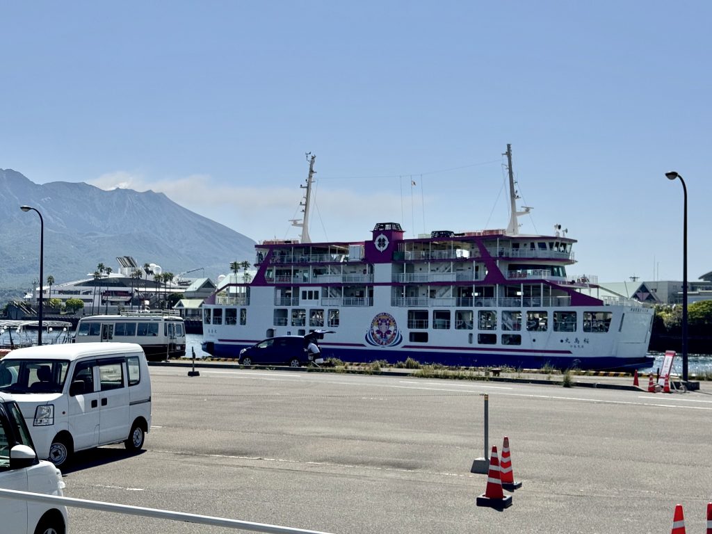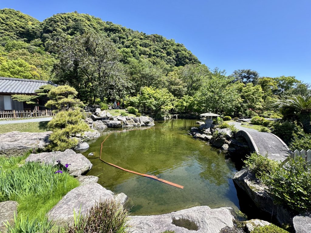After our drop-off we walk past the ferry that goes across to the volcano, note that Ponant’s Le Soléal is parked right in town (she’s only 1/3 our size so forgiven for this impudence) and then pass a lovely memorial garden as we walk onwards to Sengan-en, an UNESCO heritage gardens.