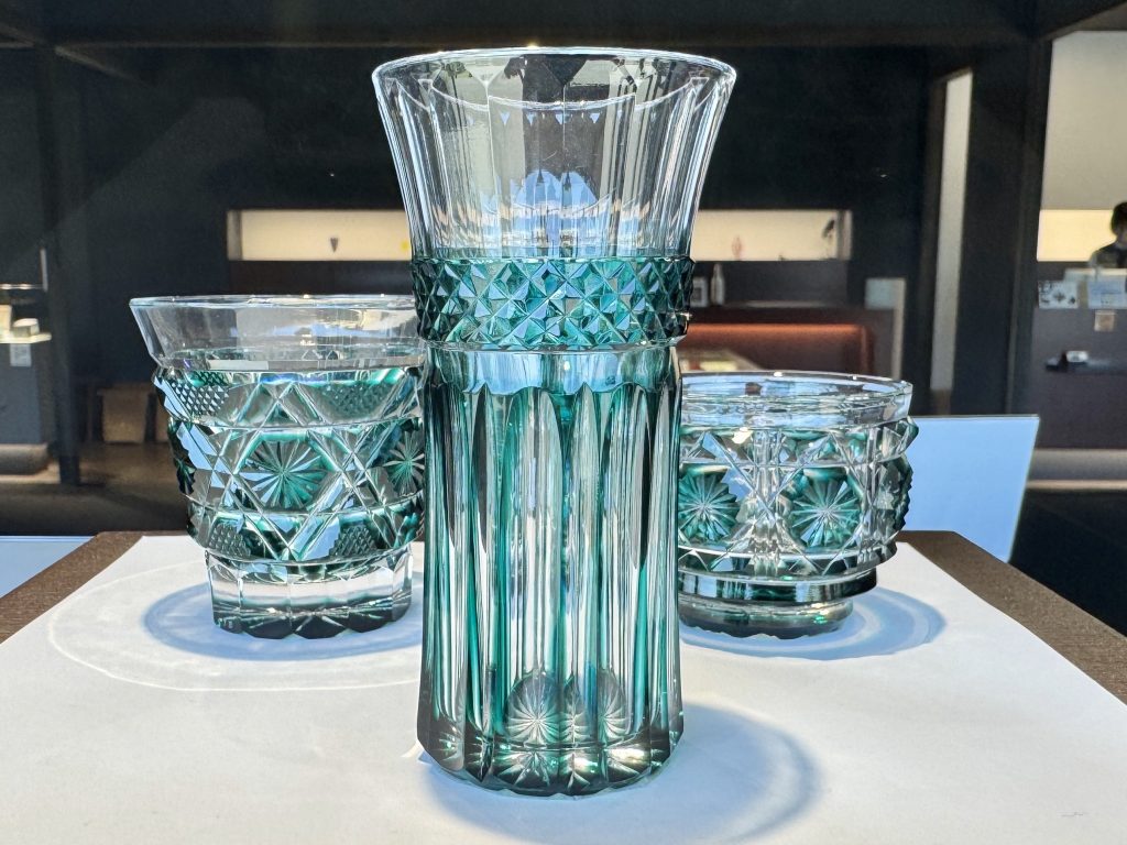 We finish our walk around the garden by visiting the oniwa and cat shrines, rice hammer and enjoying an early ice cream. Outside the gardens was a glassworks with some fine crystal on display.