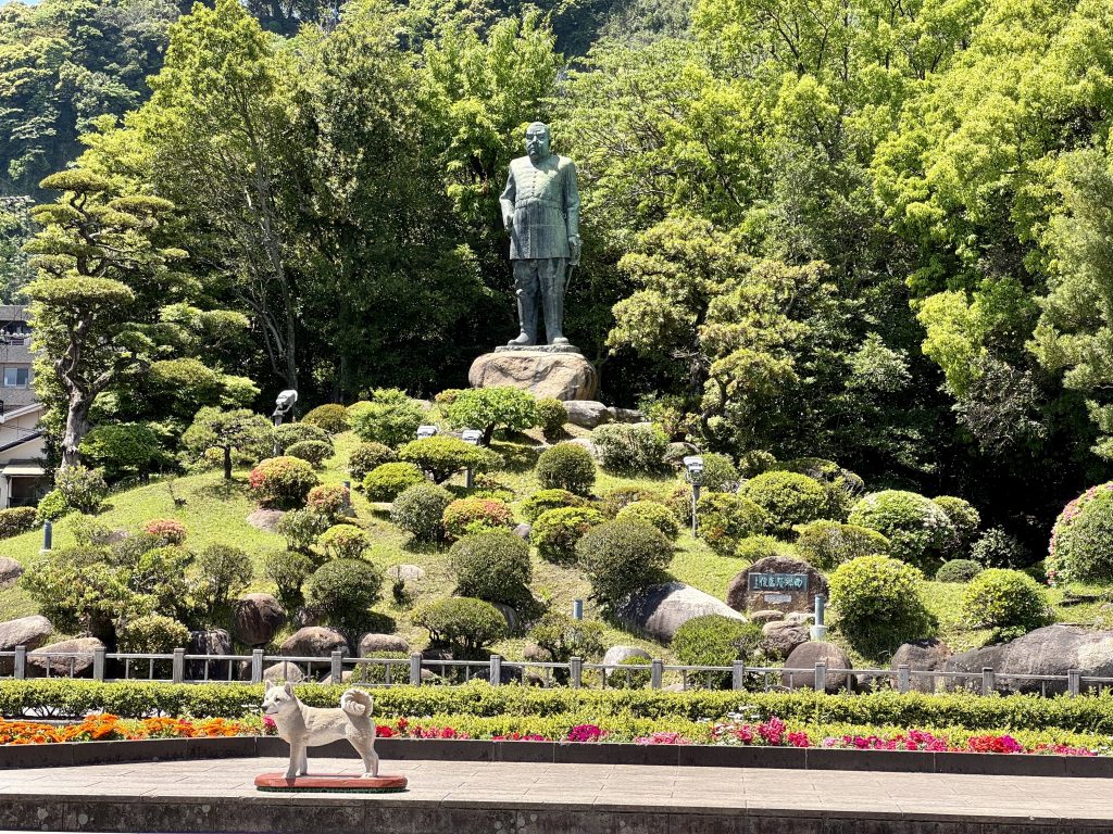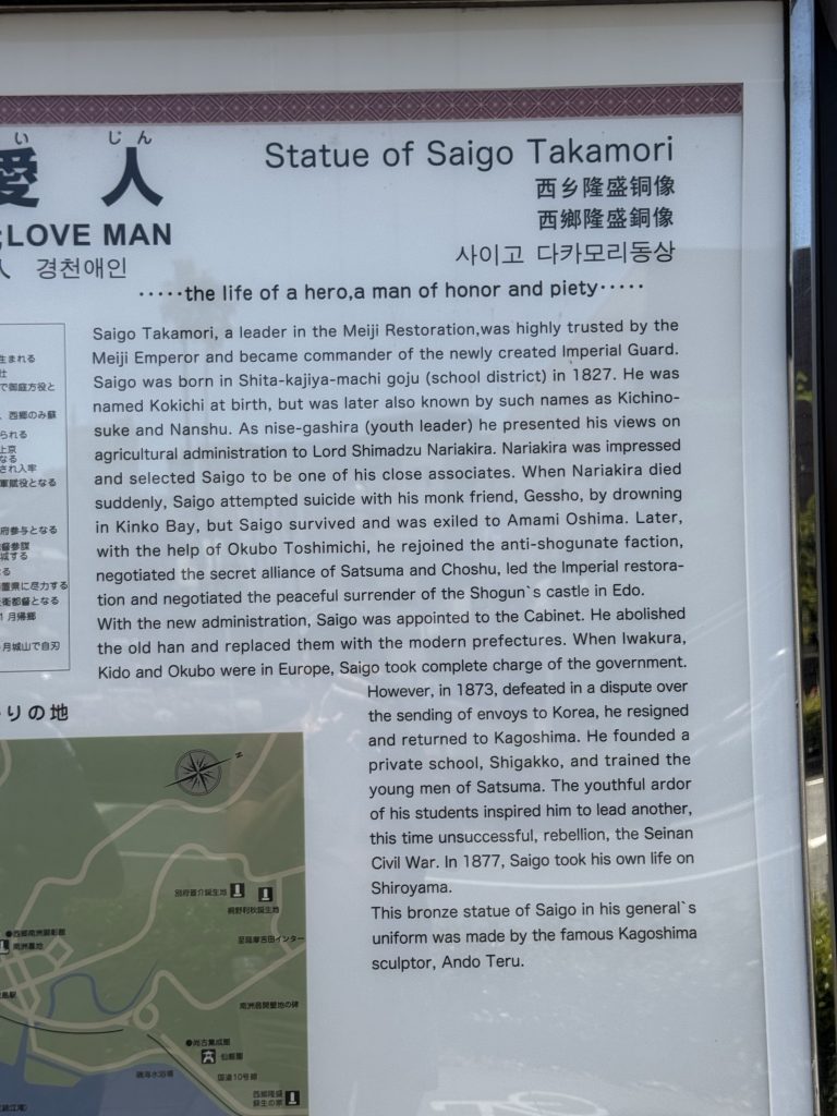 We walk back into town viewing some magnificent buildings on the route, and some great statuary, including Saigo Takamori who was important and hugely influential, at one time effectively running Japan.
