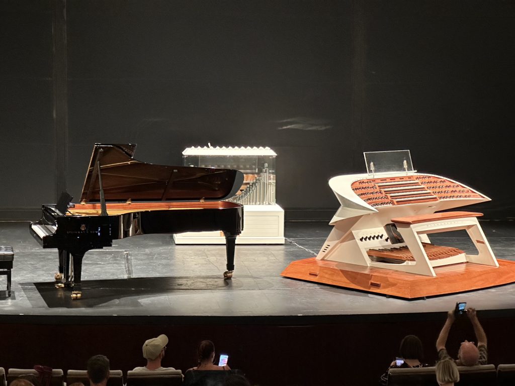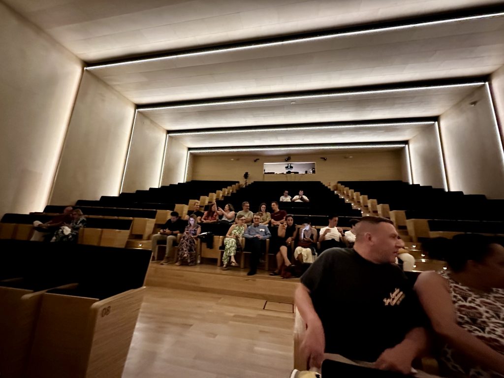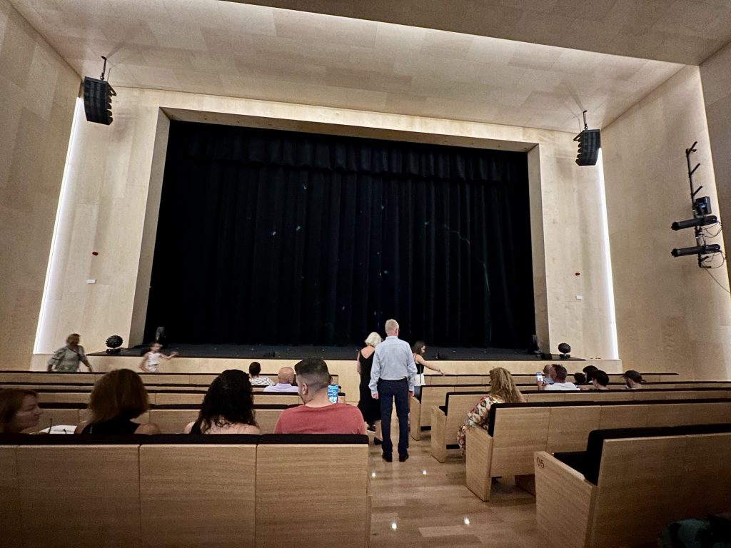 Our first experience of this incredible, modern organ is with astonishment – the instrument sounds just superb – of course we see some of the large pipes fastened to the proscenium and sidewalls each visit, but more are visible today, and it’s clear that there are hidden chambers too. The fabulous acoustic of the hall means we enjoy a superb duet of Bach’s Concierto for Piano and Organ, Gershwin’s Rhapsody in Blue, plus solos, more duets and two astonishing encores from keyboard masters Paolo Oreni and Alessandro Marangoni.