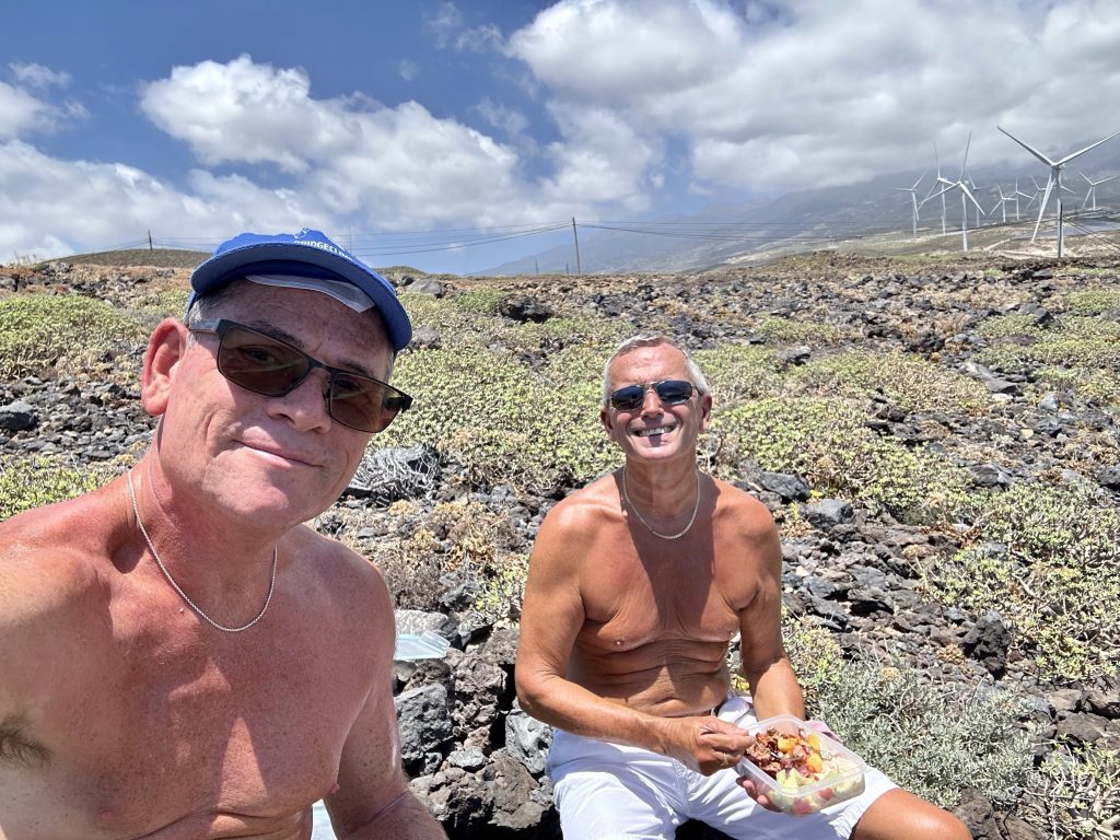 We drop back down into Abades to find our car, sweltering in the heat, has decided we’ve move to the ocean! Later we get in our daily half-mile swim before pre-dinner drinkies with Bradford.