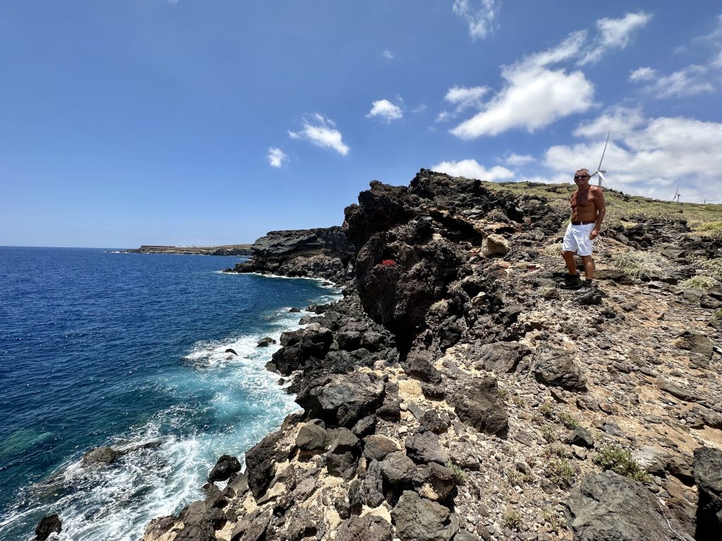 The final Sunday in June we resume our inexorable round-island walk. Today is quite significant because the starting point is at 43km by road, precisely midway between our house and where we always park at Auditorio de Tenerife in the capital, so a semi-milestone if you like. The drive, even at eco-friendly Grandad speeds, doesn’t take long, and we’re parked up at Abades, a sleepy town hugely popular with local sun-worshippers and divers, faster than one can say Steve Wright.