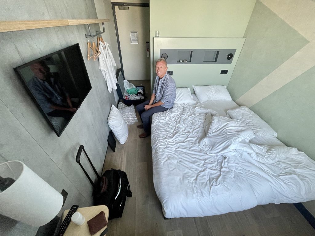 At 18:00 we head off to TFS, check in and settle down in the lounge, still serving breakfast until at 19:00 dinners are set up. I cheekily get meatballs – one has to test things out, even though I made pack-up for the plane later! Our flight leaves later than it should, and we finally land about 01:15 next morning. There’s no car hire at that time so we schlepp across Manchester Airport to check into an hotel, the tiniest room ever, for a few hours before arriving promptly at the Europcar desk as planned on this bright and warm Sunday morning. It’s a lovely drive across the Snake Pass to Sheffield.