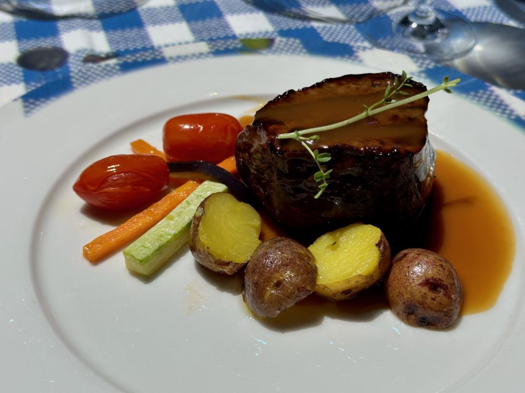 A grill is the theme of the next video, with accompaniments close enough to the soon arriving pavé of beef fillet, which like all the courses so far is plentiful and delicious.