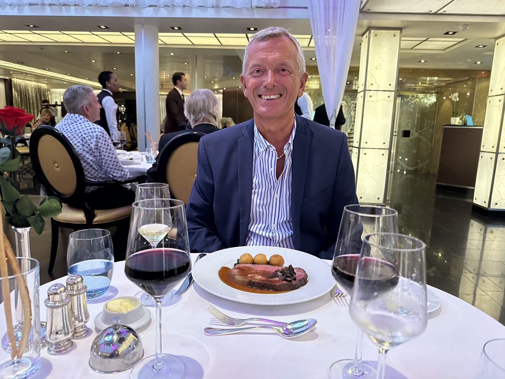 After the usual 100 laps and breakfast we’re doing Spanish by 10:00, and in the pool soon after. There’s a Galley Market lunch which is always entertaining as the staff dress up the galley and we get to walk around the spectacle. In fact we don’t actually eat there, preferring our usual patio grill venue where the service is great and we’re outside in the sunshine.